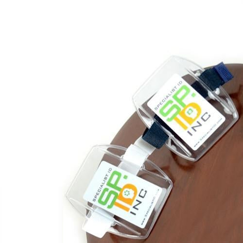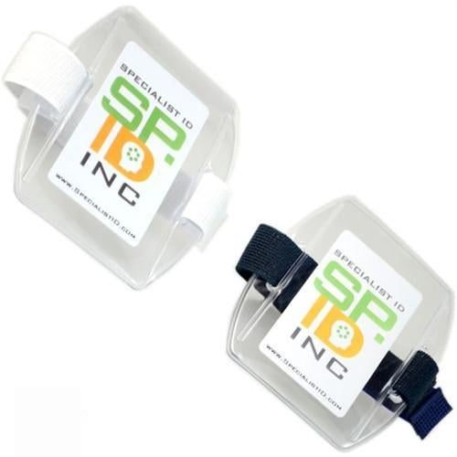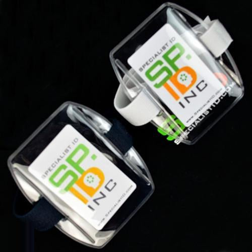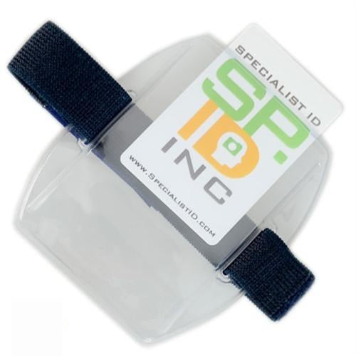 Our Vertical Armband ID Badge Holder is designed to hold vertical, over-sized CR100 photo ID badges (2.75" w x 3.8" h). The durable, flexible clear vinyl will securely protect your photo ID from moisture and dust and allow for great visibility of your badge. The adjustable elastic strap allows for a perfect fit while allowing flexibility of arm movement while working. Allows for a snug, comfortable fit and won't slip off clothing.