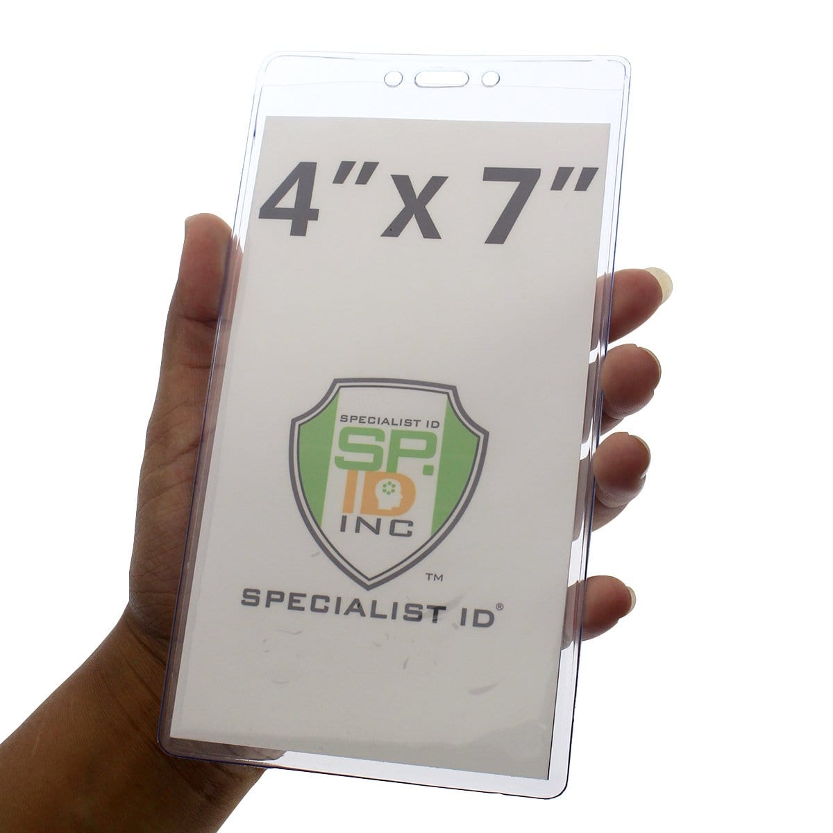 The premium clear vinyl vertical extra large credential holder can fit your large oversized badge up to 4 1/8" X 7 1/2", making this a perfect choice for your next concert, security credentials, sporting events and trade shows. Easily attach your lanyard to the slot or chain holes at the top of the holder for a secure hands free way to carry and keep your credential visible and within reach.