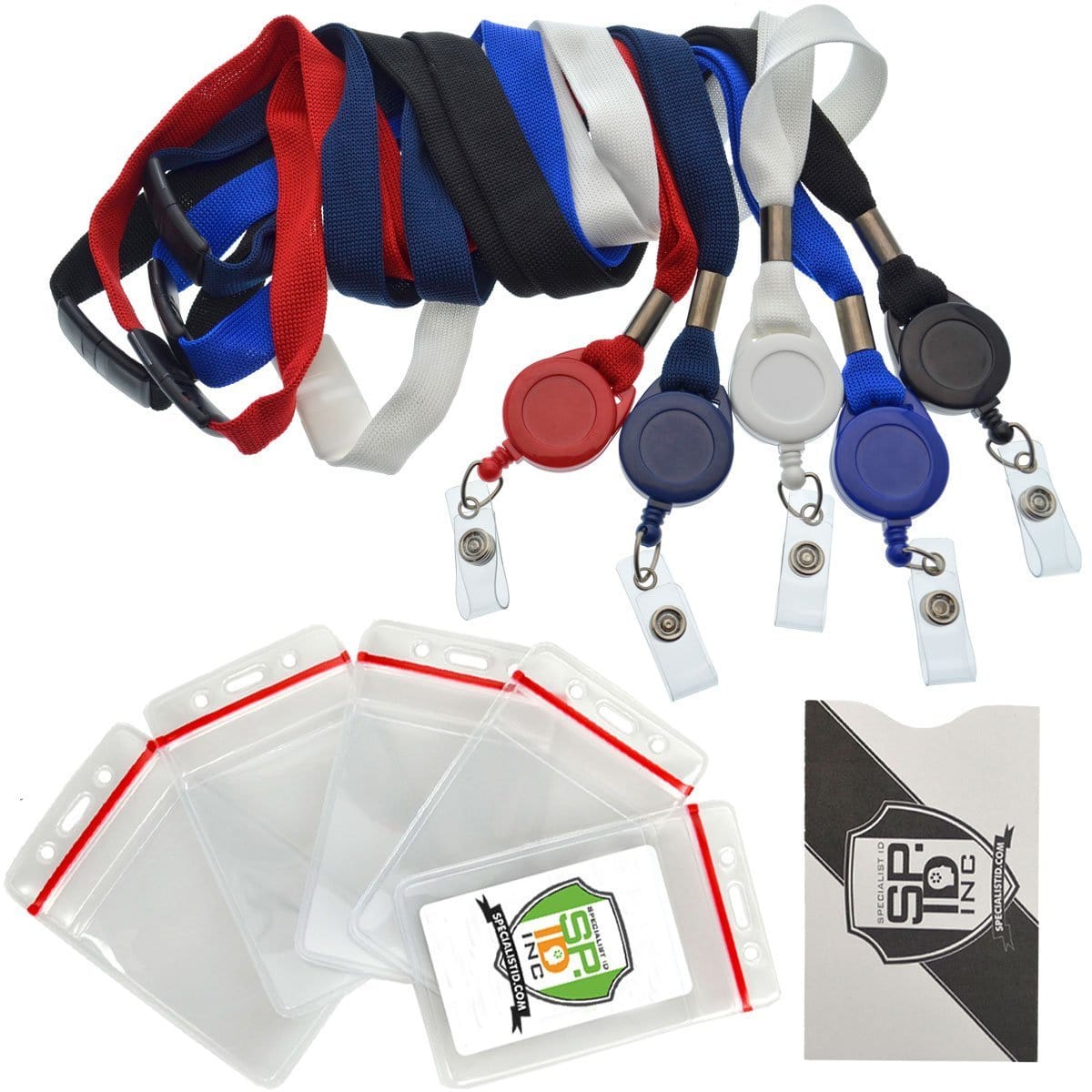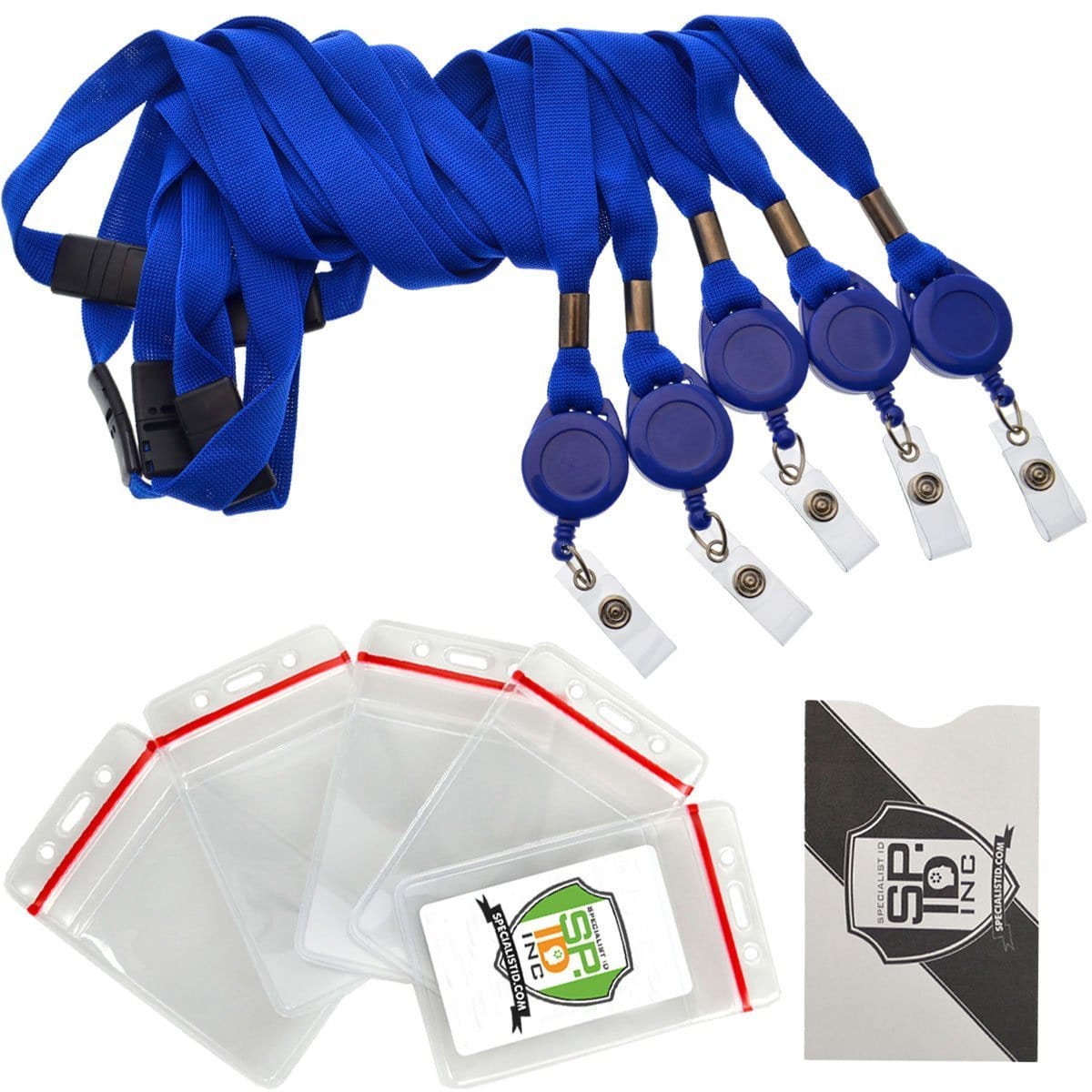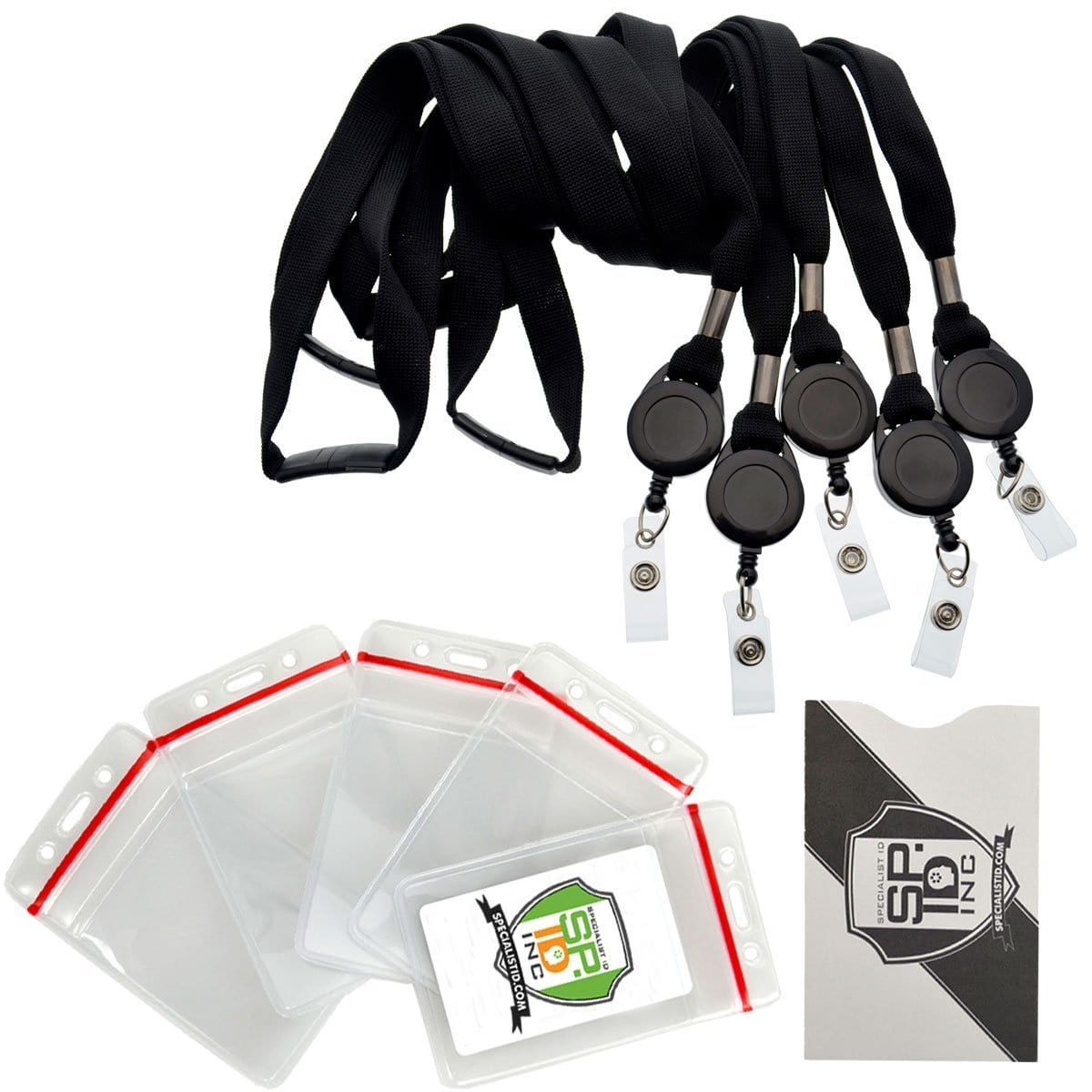 • Includes 5 Premium Retractable Lanyards and 5 Heavy Duty Vinyl Re-Sealable Vertical Badge Holders