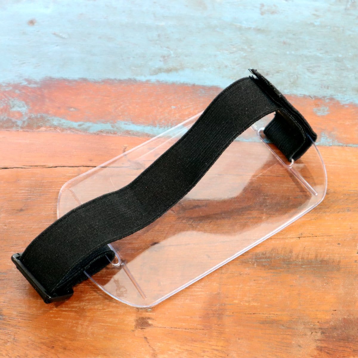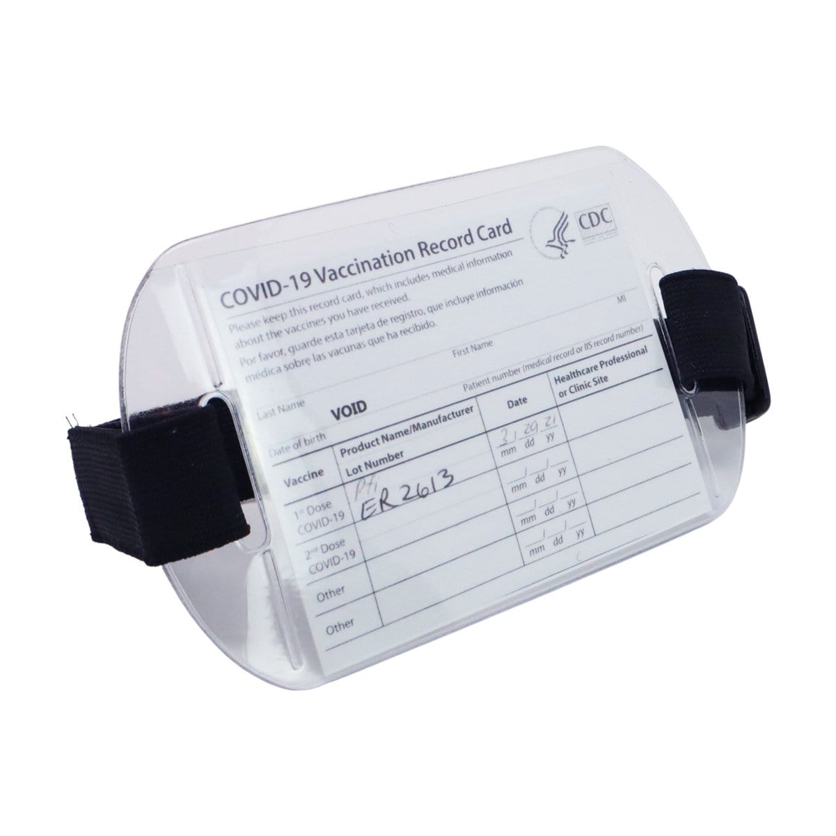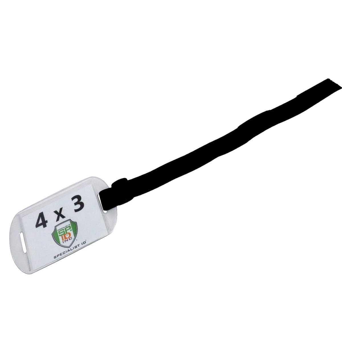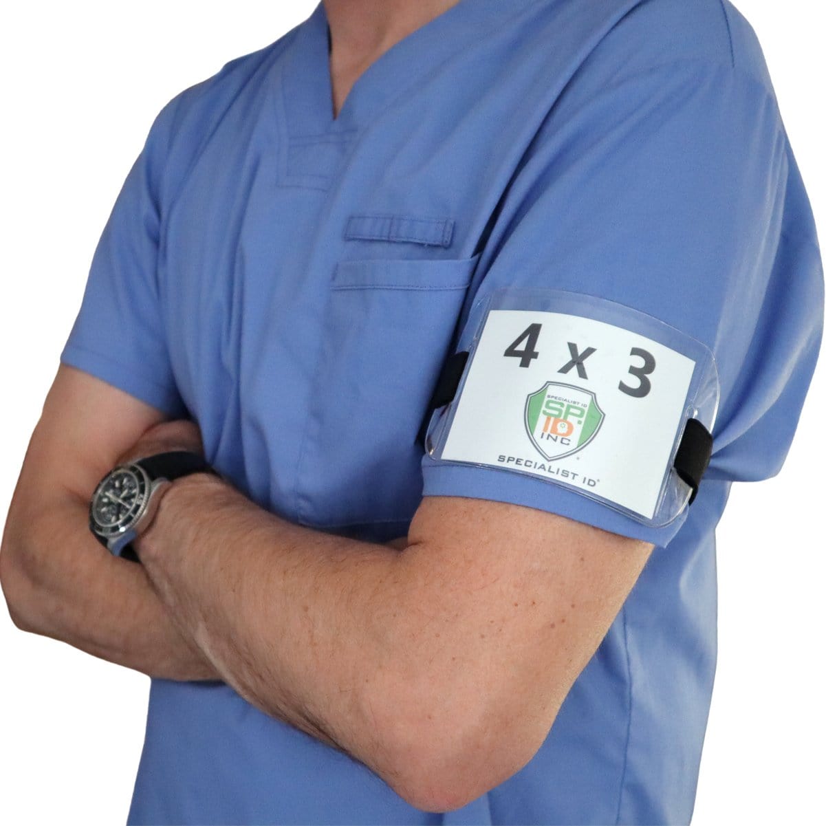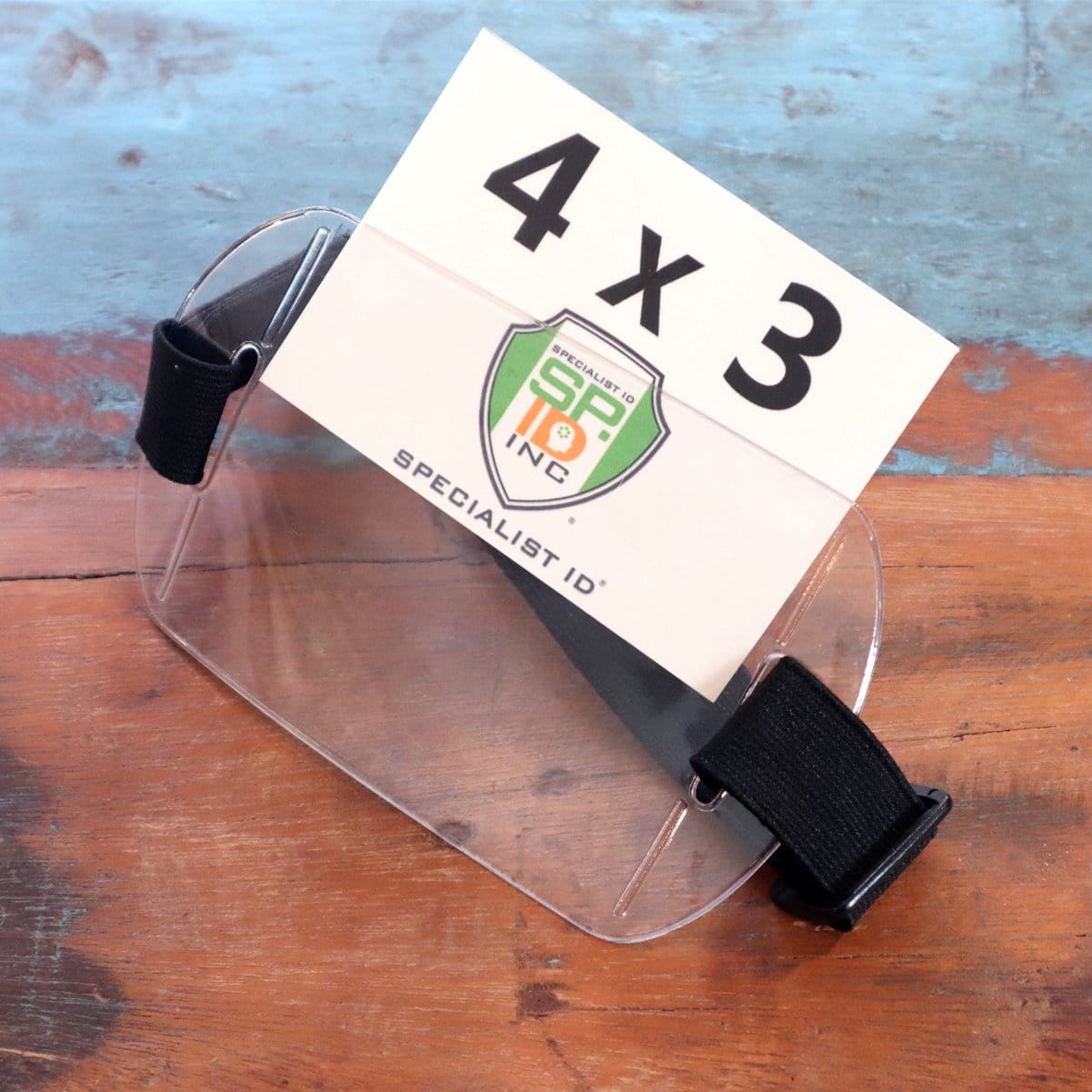 Our oversized clear vinyl horizontal arm band badge holders with adjustable hook and loop straps and clear plastic display window for 4x3 inch large CR100 size ID cards.