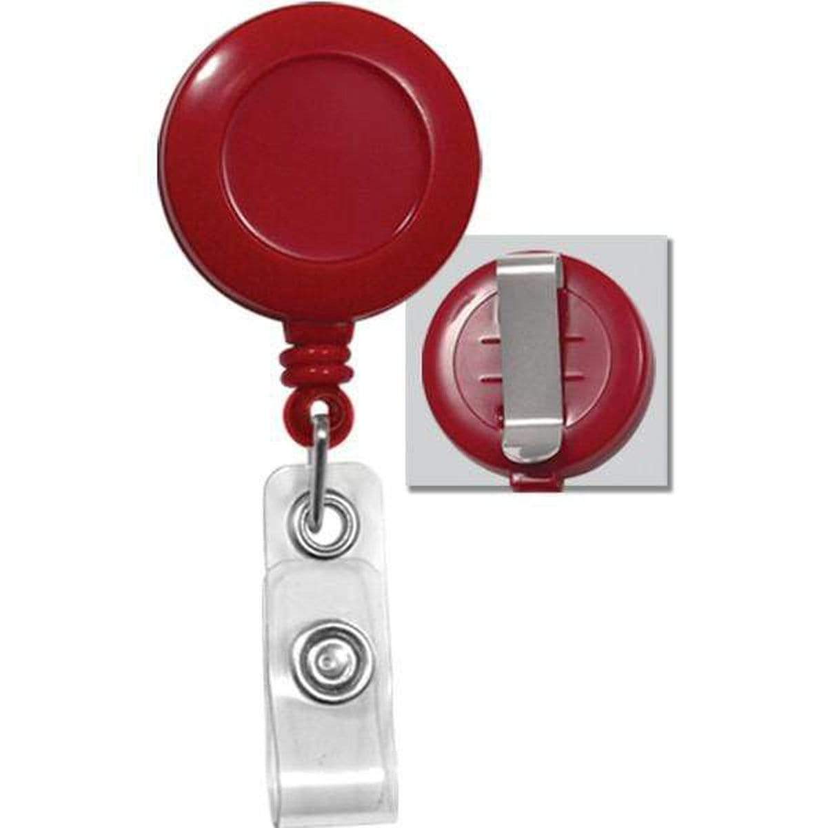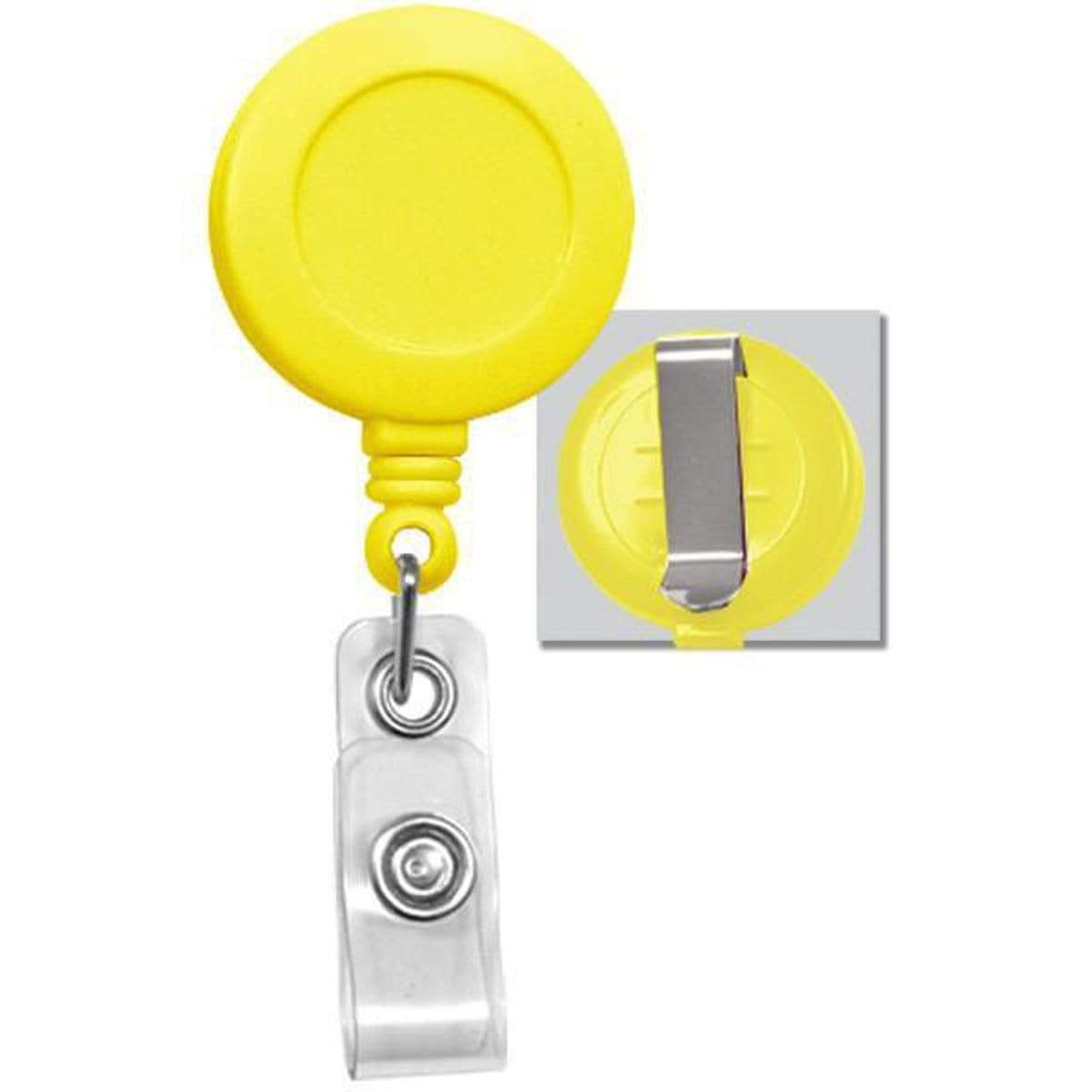 This top of the line retractable reel is standard sized at 1 3/4" in total circumference. The belt clip easily slips onto any belt for an easy access point, and the vinyl strap slips through any slot punched ID card or badge holder and snaps firmly in place. The color adds a modern, sleek and professional look that will never go out of style.