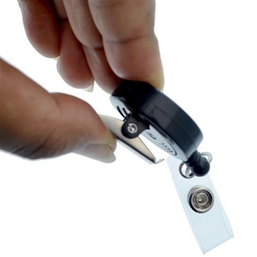This is a standard sized retractable reel with a diameter of 1-1/4" (32mm), so it's not bulky, yet always right where you need it. Colored reels like this one are always a popular choice because they can adapt to any environment. To use, simply slip the clear vinyl strap through your slot punched photo ID badge or key ring and clip the swivel spring clip onto your favorite spot for easy access. The 2120-760X is rated to last 100,000 pulls and assist you for a very long time.