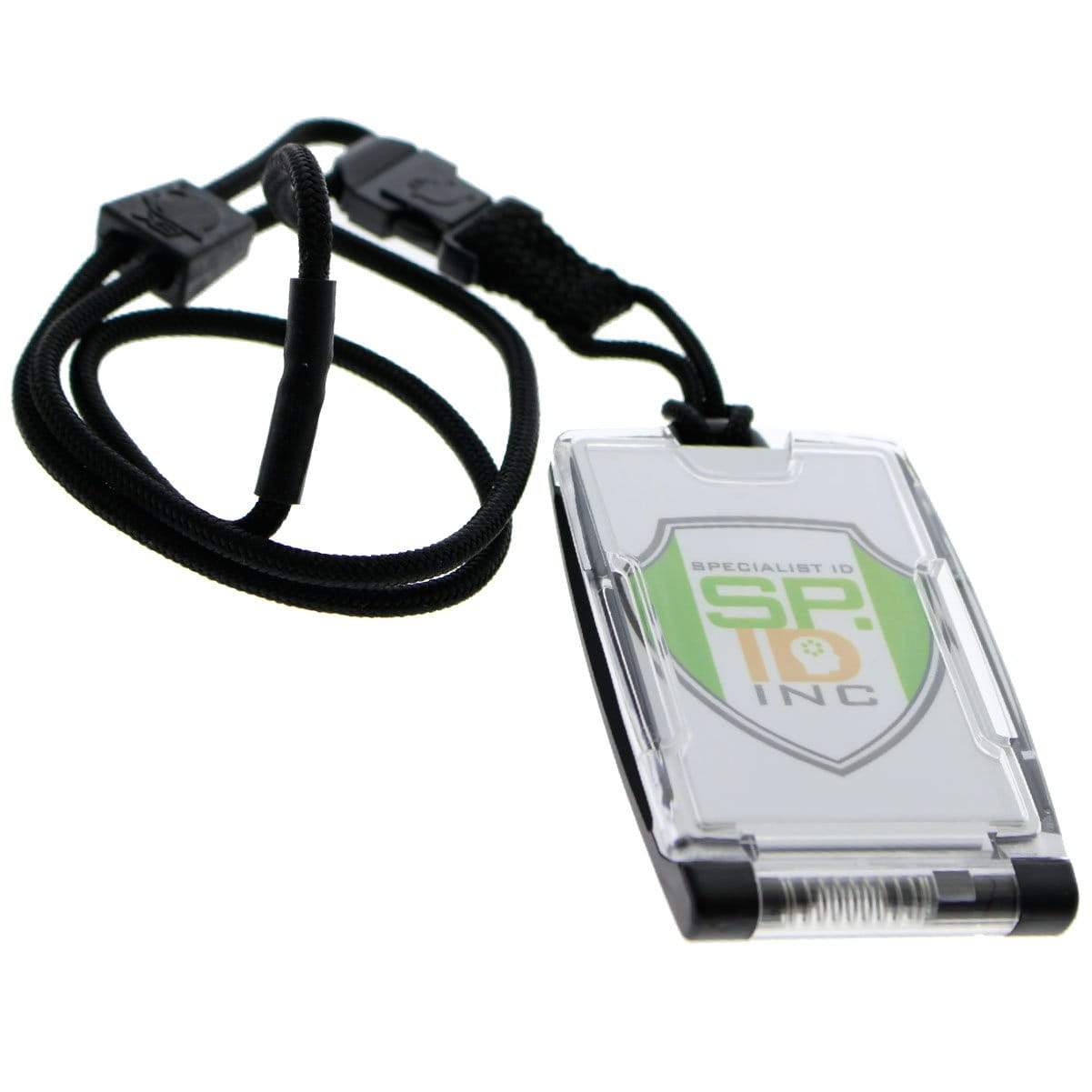 Make sure your ID badge is secure while sporting this ID Badge Holder with a Detachable lanyard by EK USA. This heavy duty lanyard is composed of 100% pure nylon rope and at 22” (559mm) you can keep your items safely in place around your neck for easy access to your ID card while still keeping it clearly visible around your chest area at all times. The ultimate in one hand credential scanning, where the card doesn't have to be taken out.