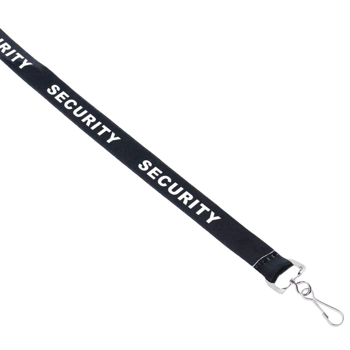 Security lanyard, part number SPID-L-SECURITY-B, are 34" black flat lanyards with bold white "SECURITY" text printed along the front and back (double sided). They're made exclusively, for quickly identifying Security personnel, staff, guard, men & women... With eye catching colors that stand out from the crowd.