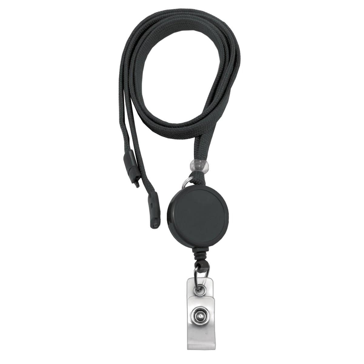 This lanyard and badge reel combo is perfect for those who need the convenience of a badge reel, yet the functionality of a lanyard all in one. This 3/8" lanyard is comfortable to wear and features a safety breakaway clasp that will snap apart if the lanyard gets caught or pulled too hard. The badge reel is 1 1/4" in diameter, made out of a sturdy plastic and rated for up to 100,000 pulls. You'll get that extra reach for swipe or tap action without having to bend or remove.