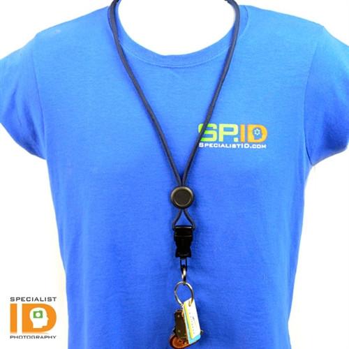 Round (1/4"), durable and soft lanyard to wear comfortably around your neck with safety breakaway feature to prevent choking if lanyard gets pulled or stuck. Great length of 36" with a round slider to adjust to a collar or chest fit. A detachable split ring allows for a quick separation of attached items to use before re-attaching back to the lanyard.