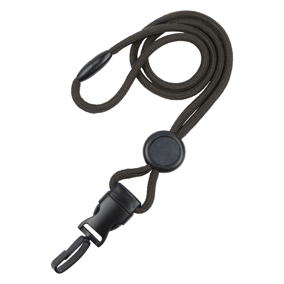 Round (1/4"), durable and soft lanyard to wear comfortably around you neck with safety breakaway feature to prevent choking if lanyard gets pulled or stuck. Great length of 36" with a round slider to adjust to a collar or chest fit. A detachable plastic swivel hook allows for a quick separation to use attached items before re-attaching back to the lanyard.
