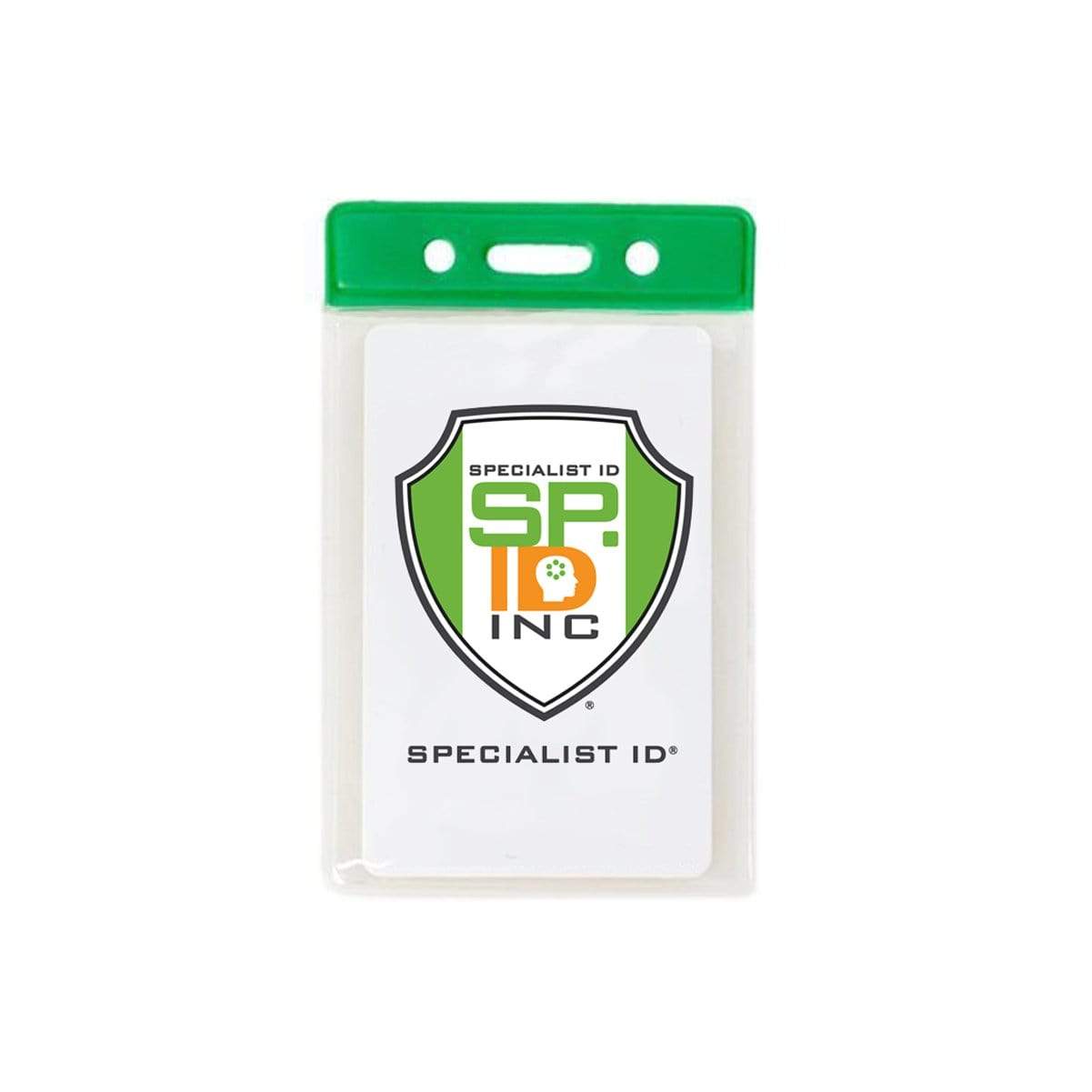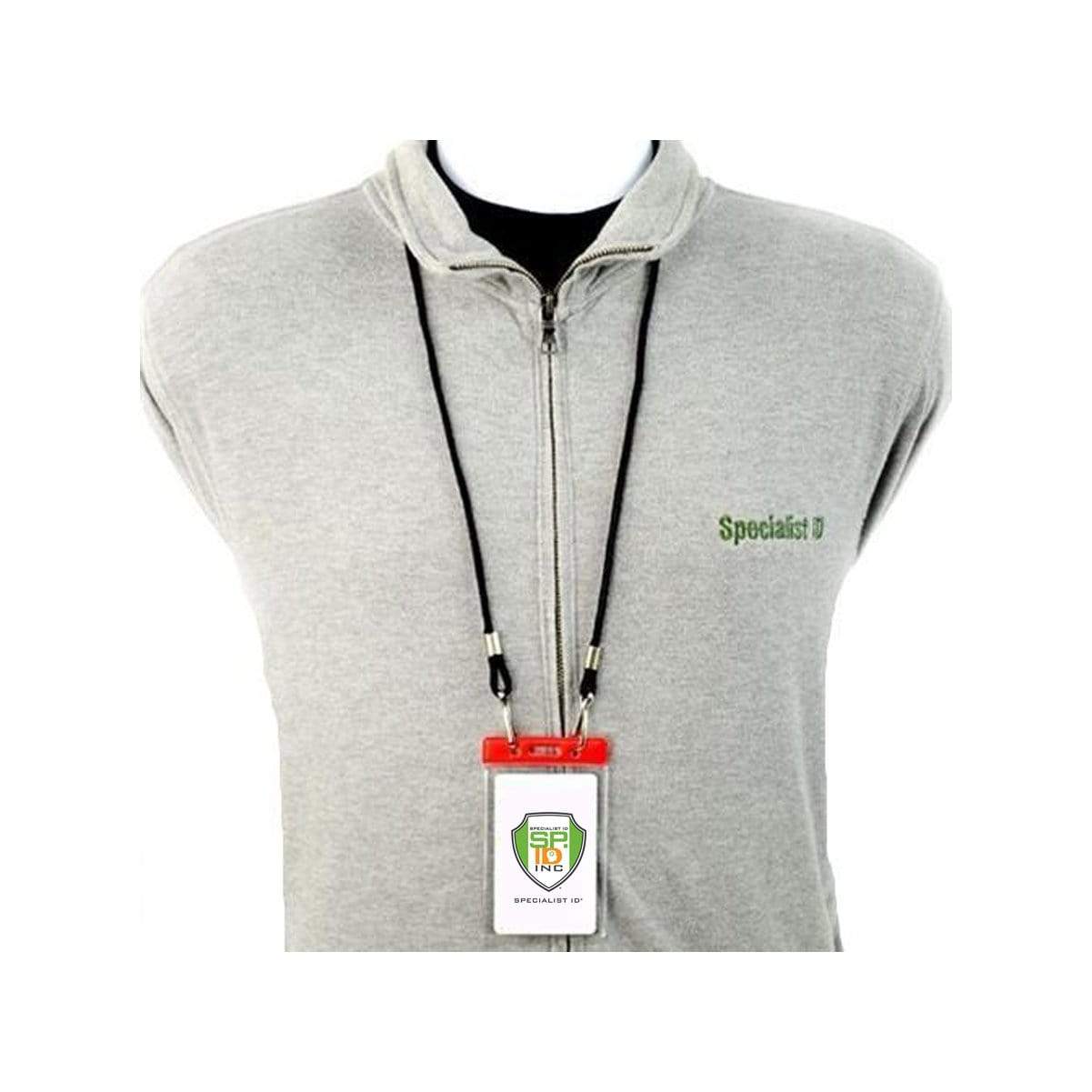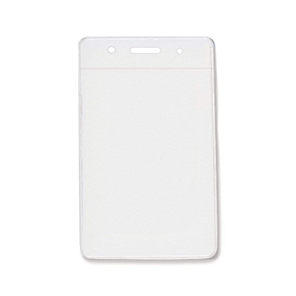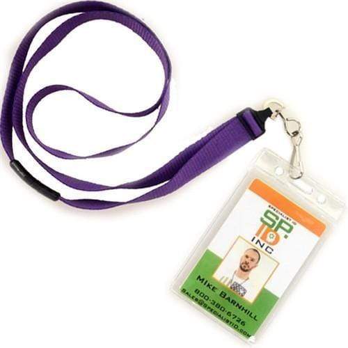 Color Coded vertical vinyl badge holders provides quick recognition of staff and associates in busy working environments. Load your credit card/drivers license sized ID card through the top of the holder, and it will vertically display your card in a clear vinyl holder that also protects your ID from dirt and grime. Afterwards, slide either a standard badge clip, neck chain, lanyard, or badge reel through the slot and chain holes on the color stripe for instant department, team, or clearance recognition.