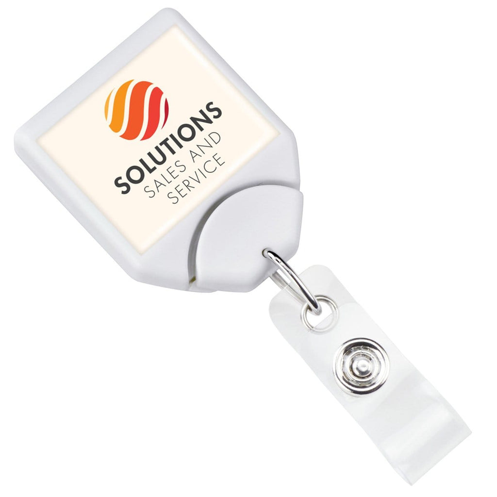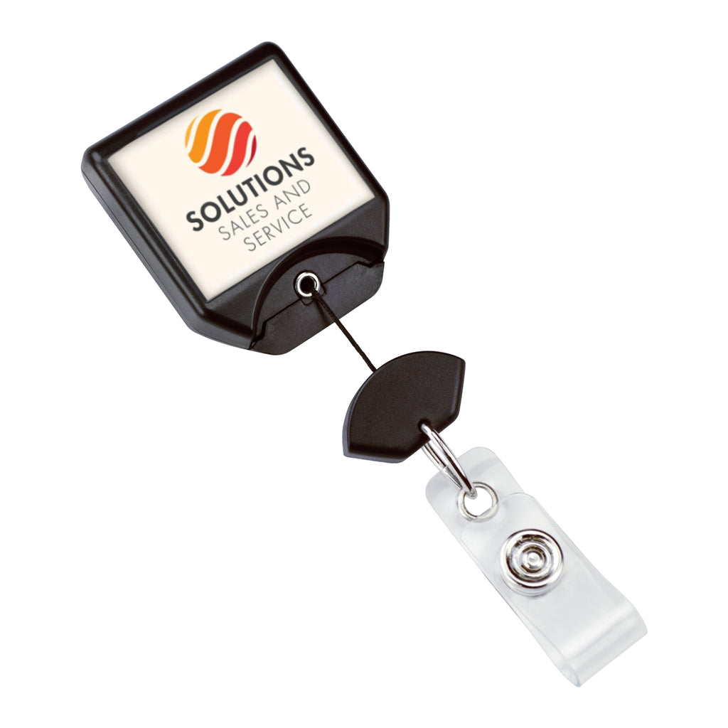Now you can easily customize to showcase your brand logo or graphic for these new retractable B-Reels. The heavy-duty design packs all the most desired features of any retractable reel all into one. The 1-3/16" x 1" (30mm s 25mm) large print area beautifully displays your full color company logo. Add your color logo, text or design graphic to the design square and adjust the size and placement to your liking within the dotted lines. Click the middle of the square, select the paint bucket icon and choose from a white or black color background.
