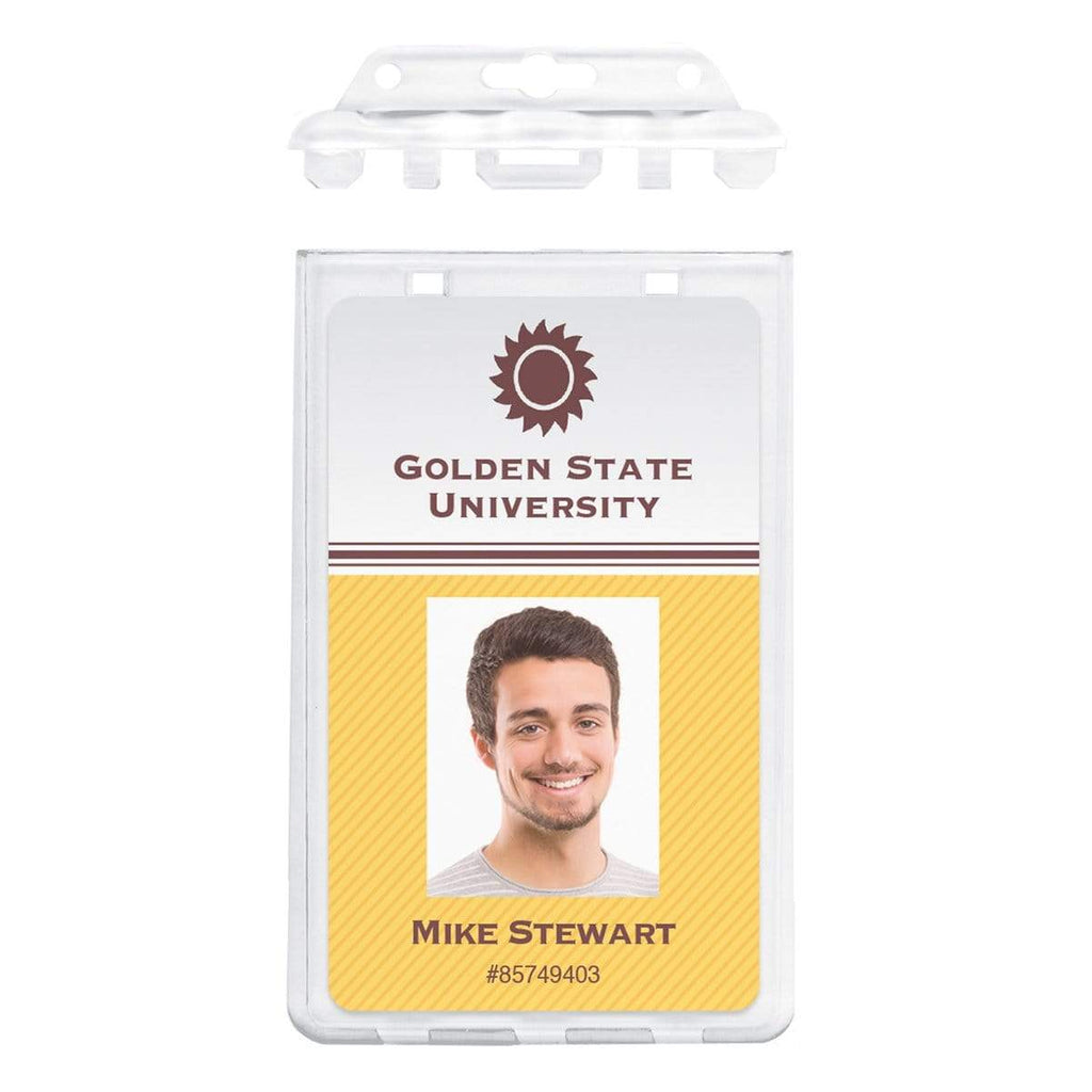 Add your logo to customize to these vertical permanent locking I'd card holders (1840-6045). Have your brand identity be recognized while keeping your inside badge credentials securely locked in while being displayed. With its transparent design and permanent locking feature, this badge holder ensures the utmost security while offering the opportunity to personalize.