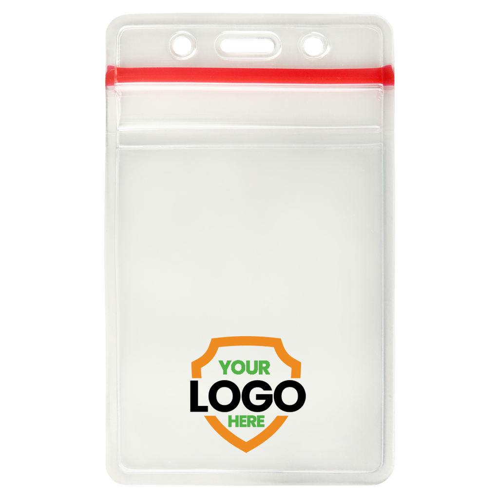 Customize these heavy duty vinyl vertical badge holders with resealable zip tops (1815-1110). Represent your brand in any work or social environment, while providing a reliable and durable accessory designed to securely hold and protect your identification badges, keycards, tickets, passes or any other important cards.