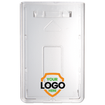 Elevate your identification and branding with our customizable premium top load slim rigid plastic ID badge holder. This sleek and slim vertical badge holder will securely hold a single ID card and, with your added logo or design, create brand recognition. Whether you're organizing a corporate event, conference, or trade show, or simply looking to enhance your employees' identification experience, adding customization promotes brand awareness and provides unity amongst the corporate office team, enhancing security for businesses of all sizes.