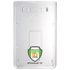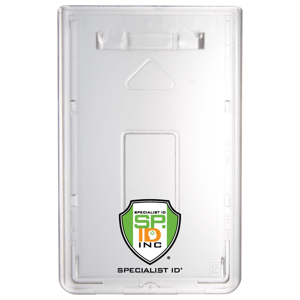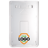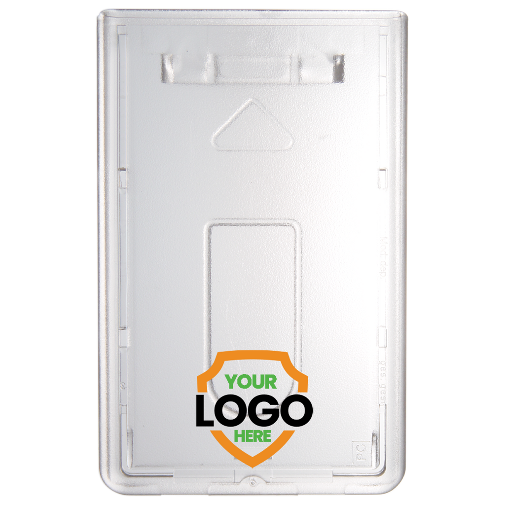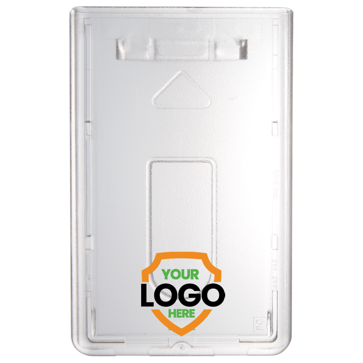 Elevate your identification and branding with our customizable premium top load slim rigid plastic ID badge holder. This sleek and slim vertical badge holder will securely hold a single ID card and, with your added logo or design, create brand recognition.  Whether you're organizing a corporate event, conference, or trade show, or simply looking to enhance your employees' identification experience, adding customization promotes brand awareness and provides unity amongst the corporate office team, enhancing security for businesses of all sizes.