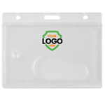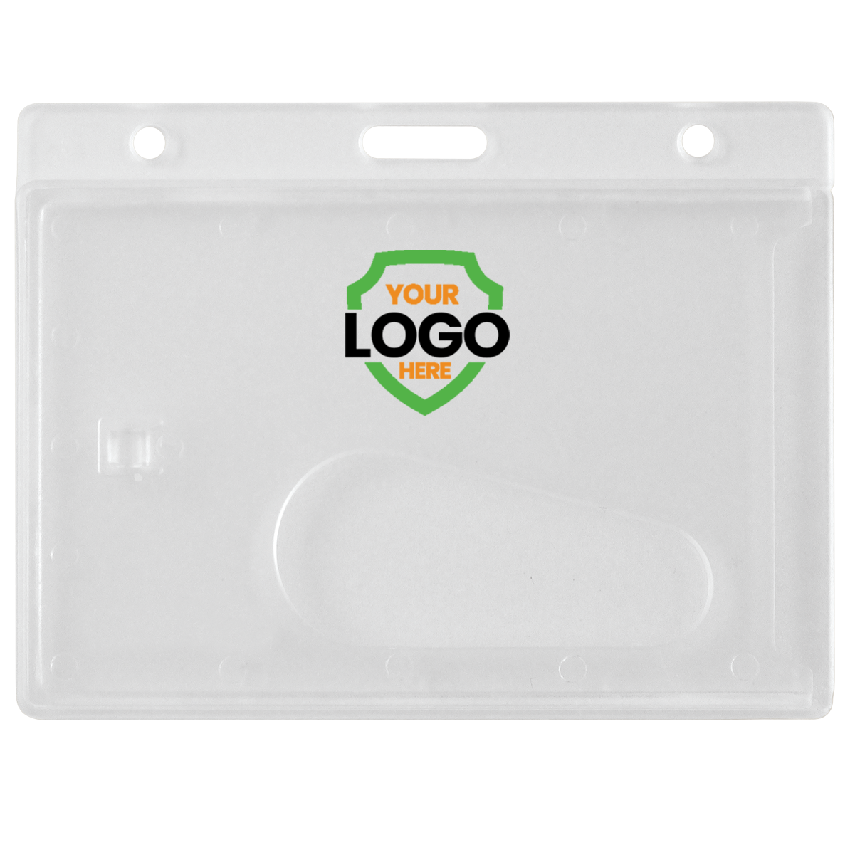 Make it personal by adding your logo! Customize your horizontal rigid, clear plastic card dispenser easily using our online design tool. Simply upload your full color logo or image, adjust your design within the dotted lines for a smaller or larger layout, and place your brand logo or title in any of the open space provided. Showcase your brand identity while safeguarding your credit card sized ID badge.