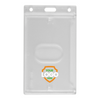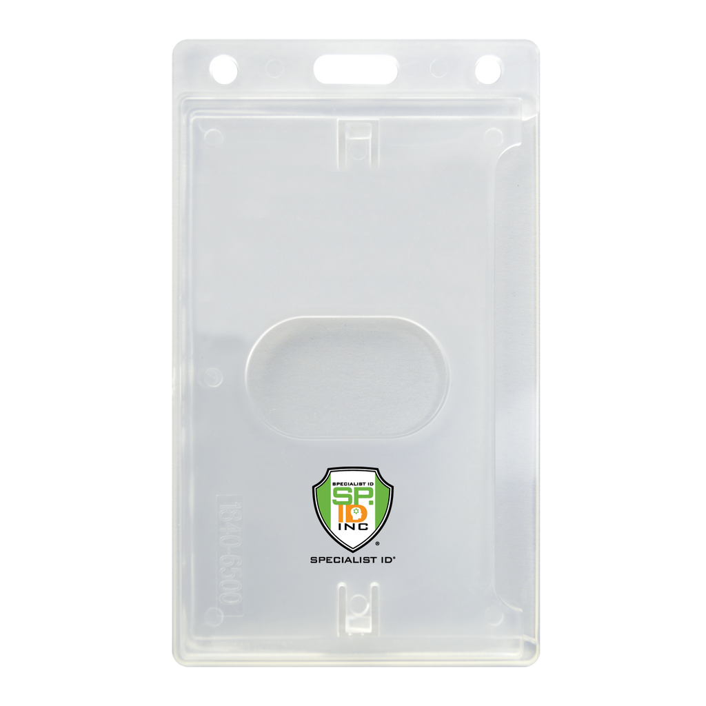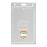 Add your mark to these slim and sturdy vertical side load badge holders. Build trust and loyalty with brand recognition by adding your brand logo. Hard plastic vertical badge holder with thumb notch removal. Side load your everyday CAC for easy access, secure card protection, and a stylish image. With its frosted finish (clear with a light frost) and customizable feature, this card holder combines security, functionality, and personality all in one.