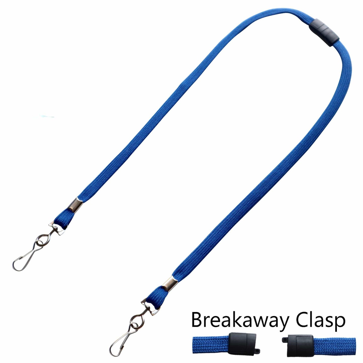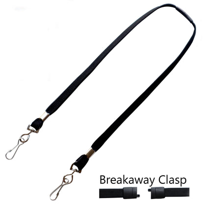 Our double ended lanyard holder is perfect for adult usage, hanging at about 14 1/2" in length with 2 slim j hook clips on each side for a discreet attachment to larger size badge holders.  Great for conventions, conferences, trade shows, concerts, and other special events where bigger badges are required. The double ended hook clips allow for easy attachment to badge holder slot holes, ID cards, or facemask loops, providing convenient access to identification while keeping badges from twisting and facing forward. With a safety-conscious breakaway clasp design, our lanyards offer a secure and comfortable fit for any public location requiring ID badge recognition, reducing neck injury from pulling, snagging or being yanked.