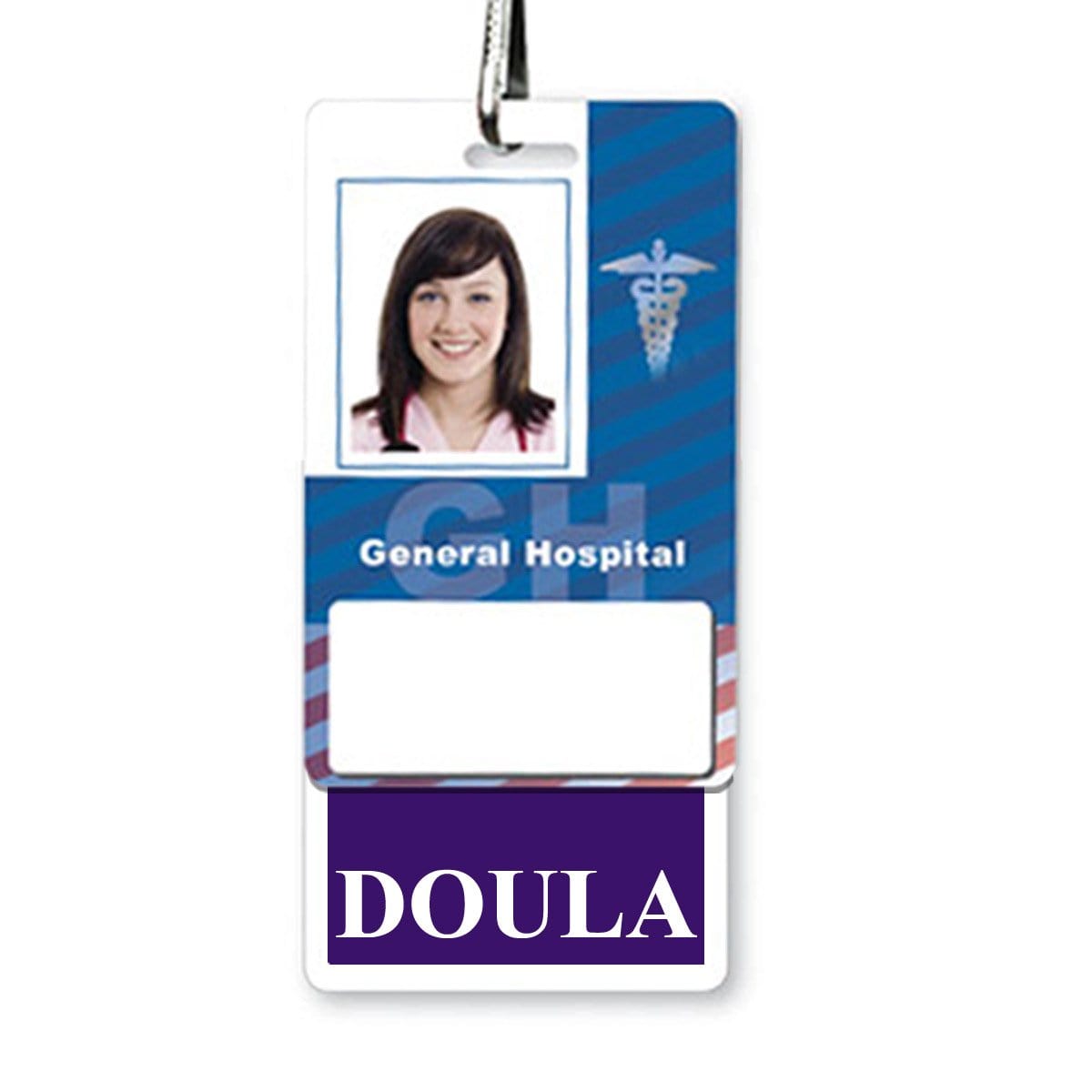 The DOULA badge buddy is perfect to display instant roll recognition in any busy hospital environment. The "DOULA" Vertical Badge Buddy with its purple border allows for immediate roll recognition without the need for faculty and patients to examine the badge closely.