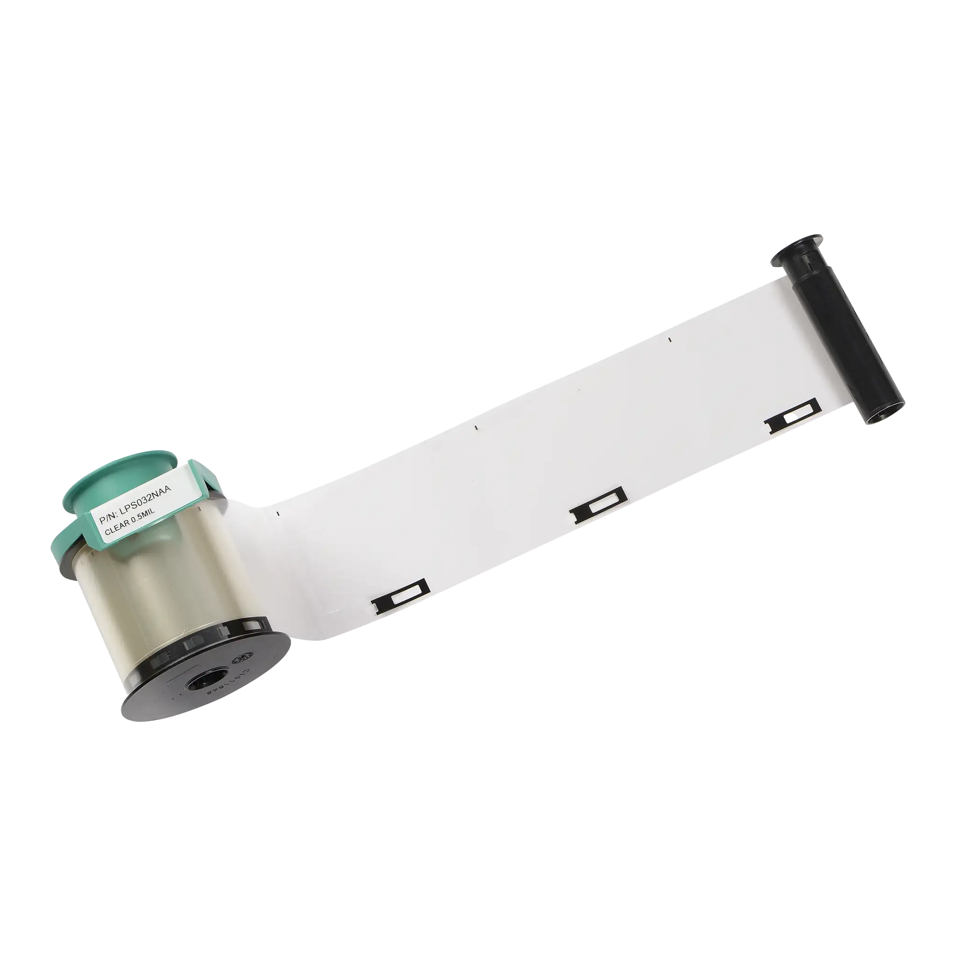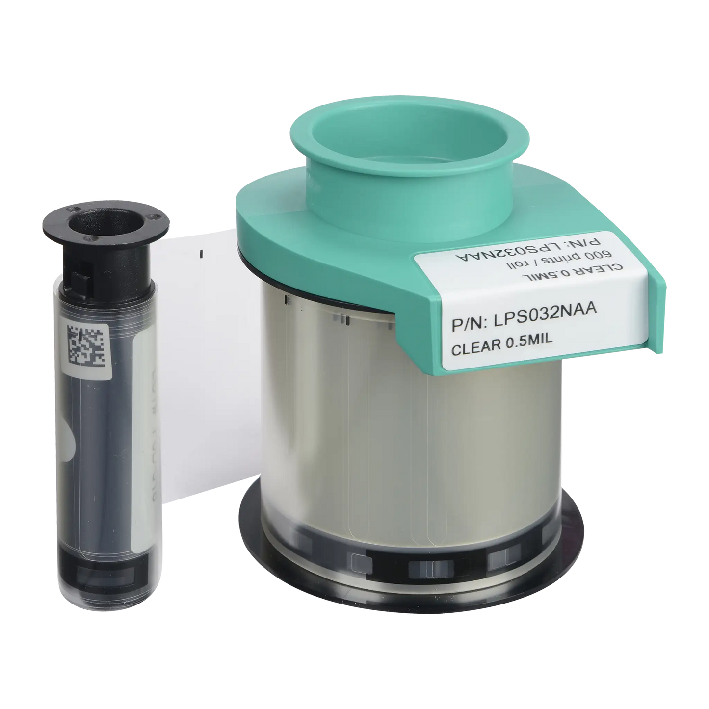 The Evolis LPS032NAA Clear Patch Laminate, offering 600 prints per roll, is compatible with the Primacy2 and Avansia Lamination ID Card Printers. This clear patch laminate features a 0.5 mil thickness, providing a protective overlay that enhances the durability and security of printed cards. Each roll ensures consistent quality and performance, ideal for securing and extending the life of your ID cards.
