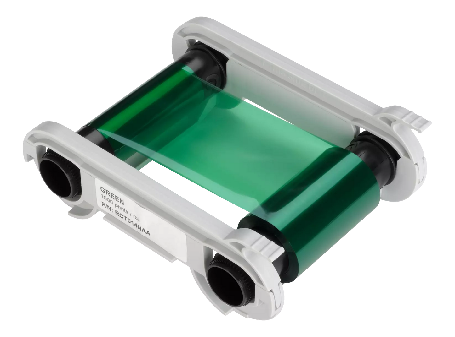 Maximize your Evolis printer efficiency with 1,000 high-quality monochrome prints per ribbon using premium green resin formulation that creates bold, vibrant green text and graphics with superior durability and fade resistance, featuring RFID automatic ribbon recognition and ribbon saver technology that eliminates waste and ensures consistent brand-compliant color output for professional credential programs requiring long-term visual consistency.