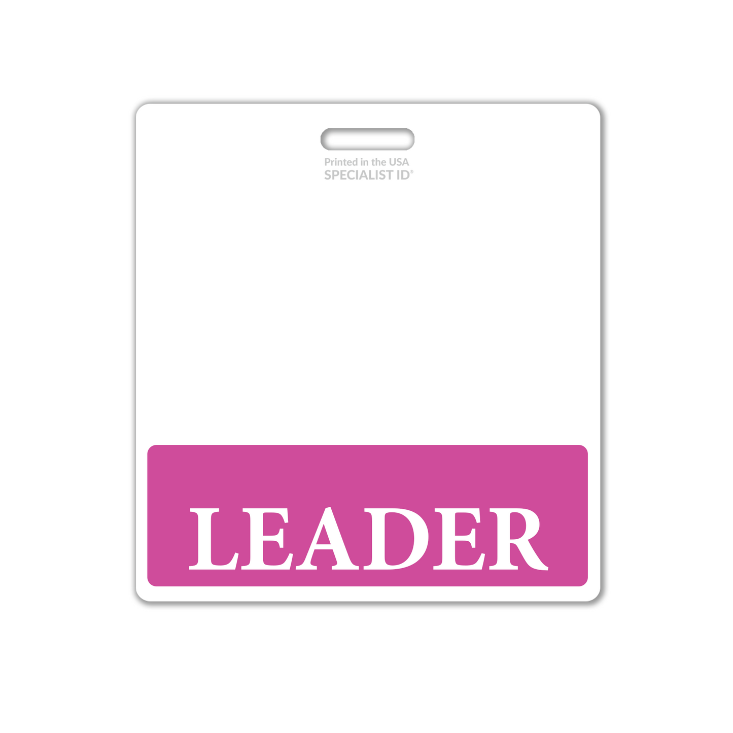 The Leader Badge Buddy is a vital identification tool for healthcare and professional environments, designed to ensure swift and clear recognition of team leaders by staff, patients, and visitors. Featuring the "Leader" title prominently displayed on both sides, it is framed with a vibrant color border for maximum visibility in busy settings. Constructed for durability and practicality, this badge buddy is flexible to resist wear and tear and easy to clean, aligning with the high standards of hygiene and professionalism required in leadership roles. Equipped with a slot punch hole, it attaches effortlessly to a badge reel or strap clip, making it easy to wear behind a standard horizontal ID badge. This durable, laminated badge buddy enhances the visibility of leaders, reinforcing their position and fostering confidence among teams. By clearly identifying the wearer’s role, it supports trust, collaboration, and efficiency within the workplace.