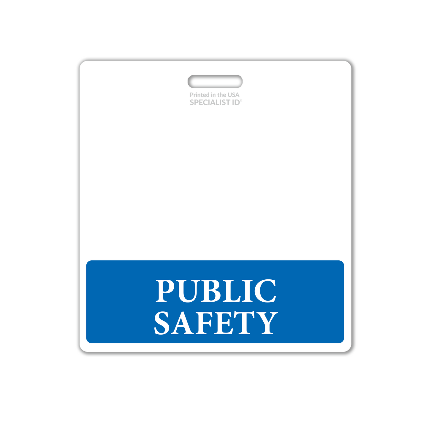 The Public Safety Badge Buddy is an essential identification tool for healthcare and public service environments, designed to ensure quick and clear recognition of public safety personnel by staff, visitors, and the community. Featuring the "Public Safety" title prominently displayed on both sides, it is outlined with a vibrant color border for enhanced visibility in dynamic and high-pressure settings. Built for durability and practicality, this badge buddy is flexible to resist breakage and easy to clean, meeting the rigorous standards required in public safety roles. Equipped with a slot punch hole, it easily attaches to a badge reel or strap clip, allowing it to be worn securely behind a standard horizontal ID badge. This laminated, high-quality badge buddy highlights the vital role of public safety personnel, fostering trust, professionalism, and effective communication in maintaining a secure environment.
