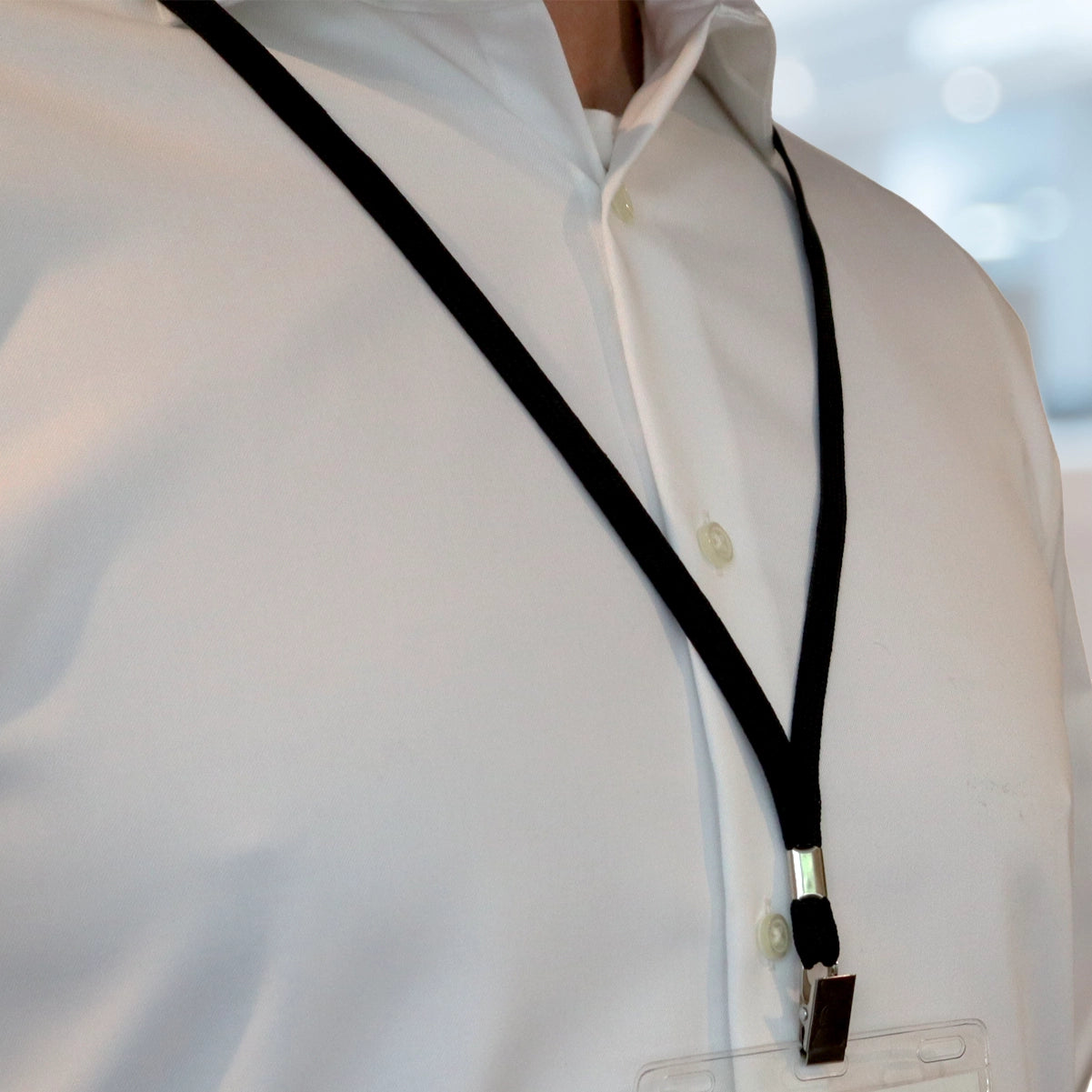 Our Flat Braid Woven Lanyard With a Steel Bulldog Clip, part number 2135-355X, offers professionals an attractive and sleek lanyard that is great for carrying and visibly displaying a slot punched photo ID, ID badge holder, or conference pass. This tightly woven 3/8" flat braid lanyard feels soft and sturdy. At 36" in total circumference, it hangs comfortably around your neck and displays your ID just around the belly button area for most adults.
