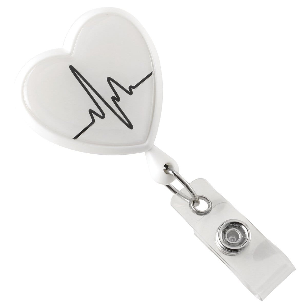 • Heart Shaped EKG Themed Badge Reel with Swivel Spring Clip