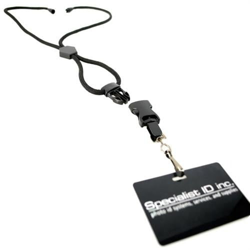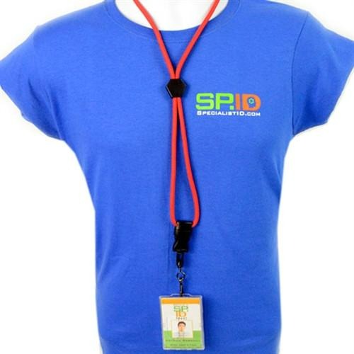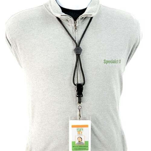 This heavy-duty breakaway lanyard with a detachable swivel hook, part number 2135-450X, will keep your slot punched ID, keys or ID badge easily visible and accessible. At 36" circumference, most adults will find that their ID's hanging conveniently around their belly button area, so they can keep their hands free.