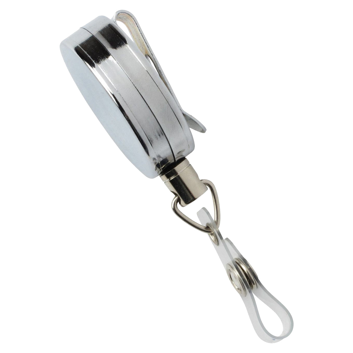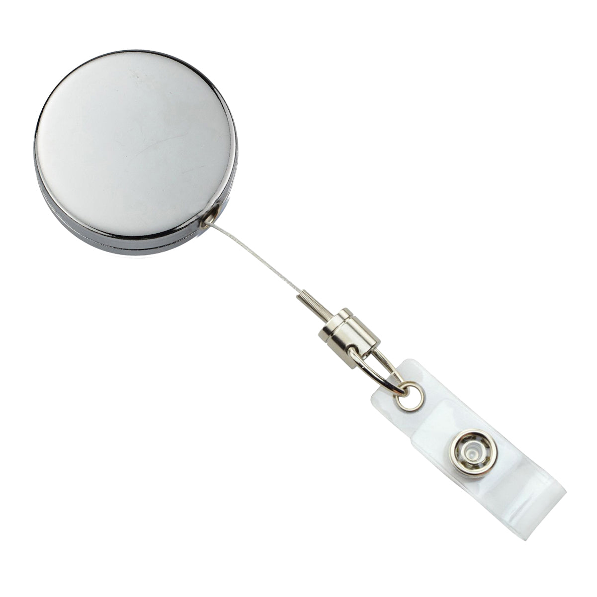 Chrome-colored badge reels! Sleek and professional accessories designed to securely hold and display identification cards, badges, or keys. The distinctive chrome finish adds a touch of modern elegance to any work or professional setting. Great for corporate offices, healthcare facilities, educational institutions, events, and more.