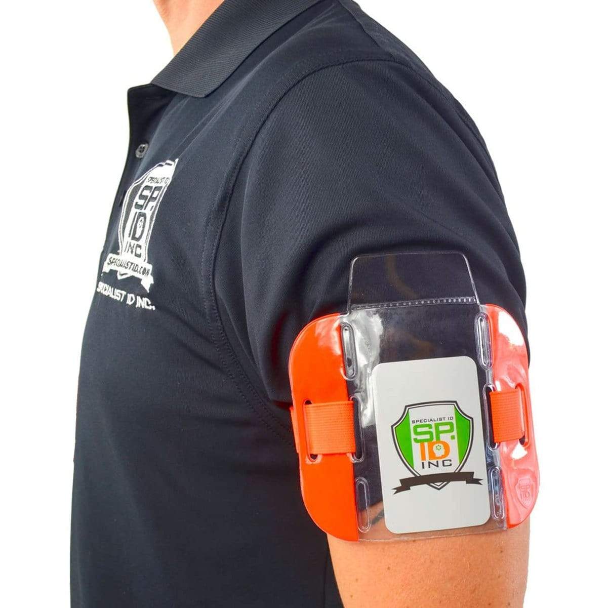 Be hands-free and highly visible wearing these bright-colored armband badge holders!