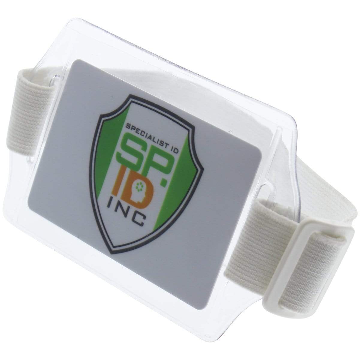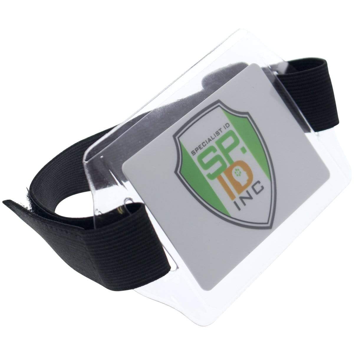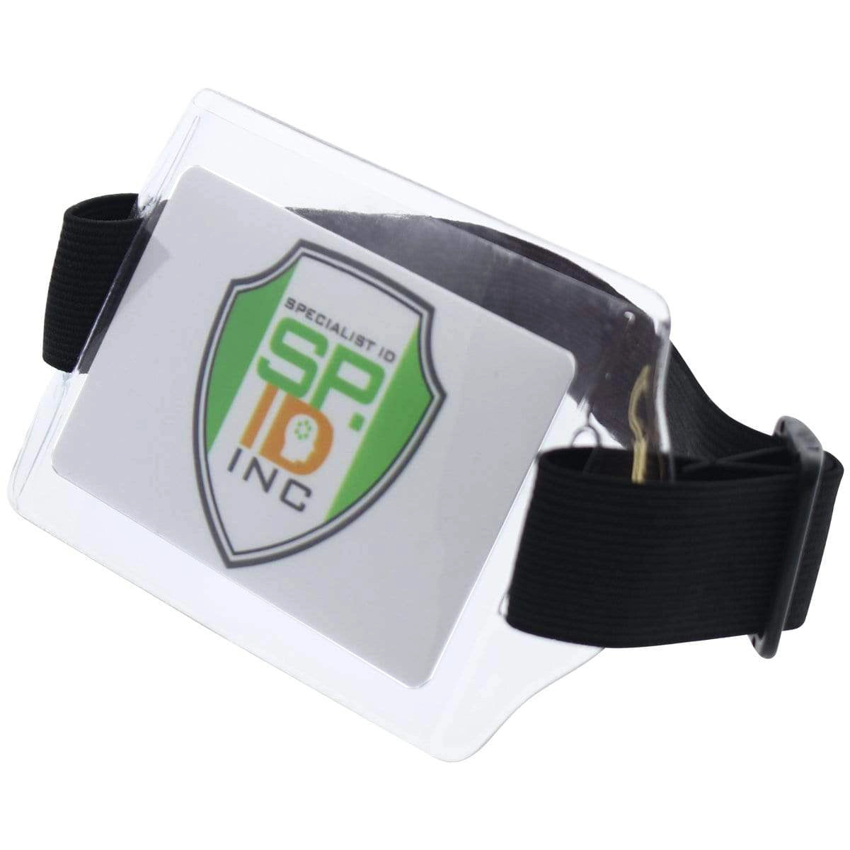 These hook and loop horizontal armband ID badge holders, part number ABH-H, are the industry standard for active workers that need a visible badge holder that will flex with movement and stay out of their way. Lightweight and breathable, the vinyl ID badge holder horizontally displays and protects your credit card sized photo ID inside of a rugged, clear vinyl enclosure that keeps away moisture and dust.