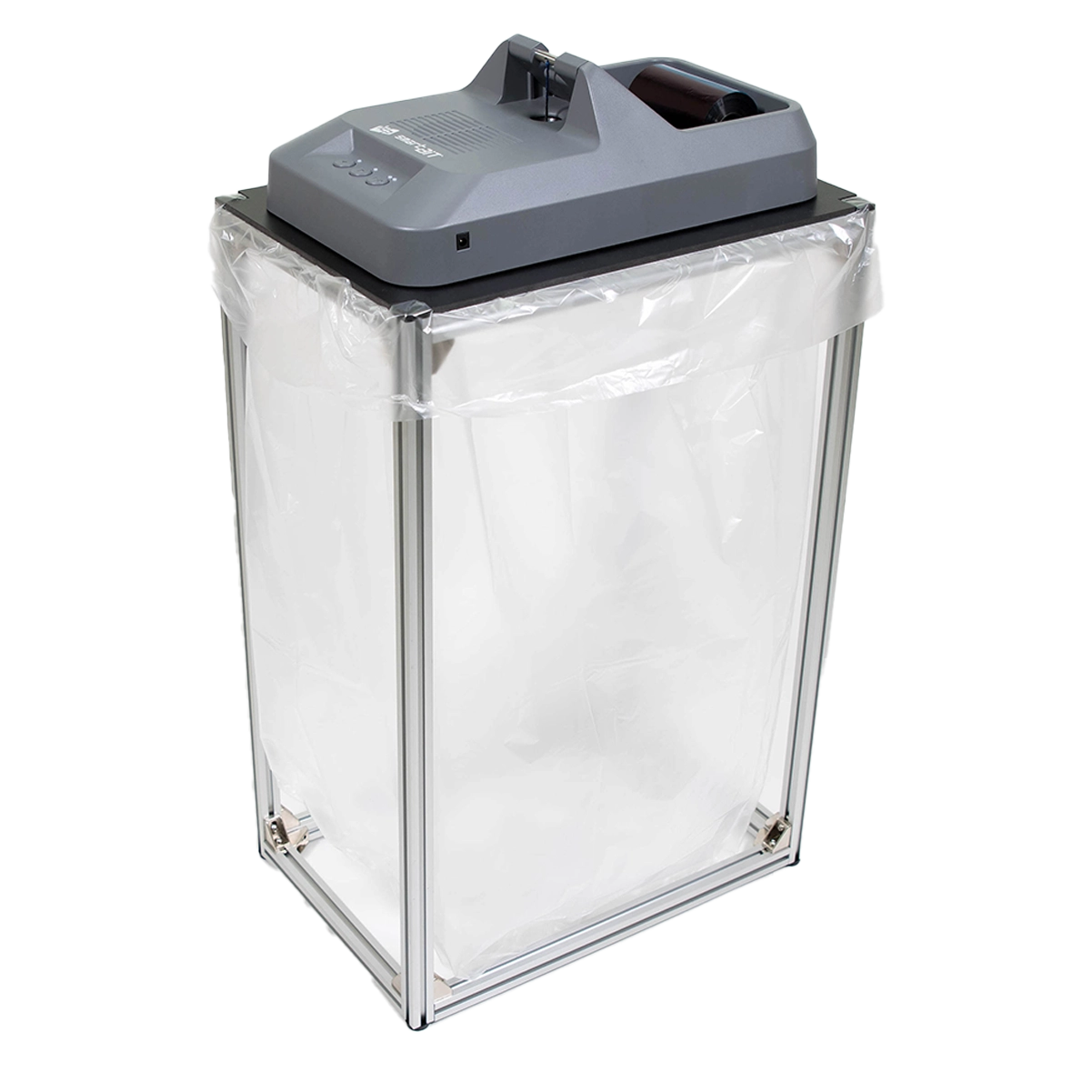 This standing frame add-on for the IDP Smart-Bit (not included) allows for the use of larger 70 liter bags. This add-on reduces the need to empty the waste bin, ideal for very high-volume applications.