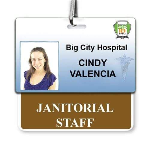 The JANITORIAL STAFF badge buddy is the perfect way to provide instant role recognition to both staff and patients in any busy company environment. Badge buddies easily clip onto your existing badge reel or lanyard and work with any standard sized ID Badge. They are printed on both sides of the card to display visibility even if the ID is flipped around.