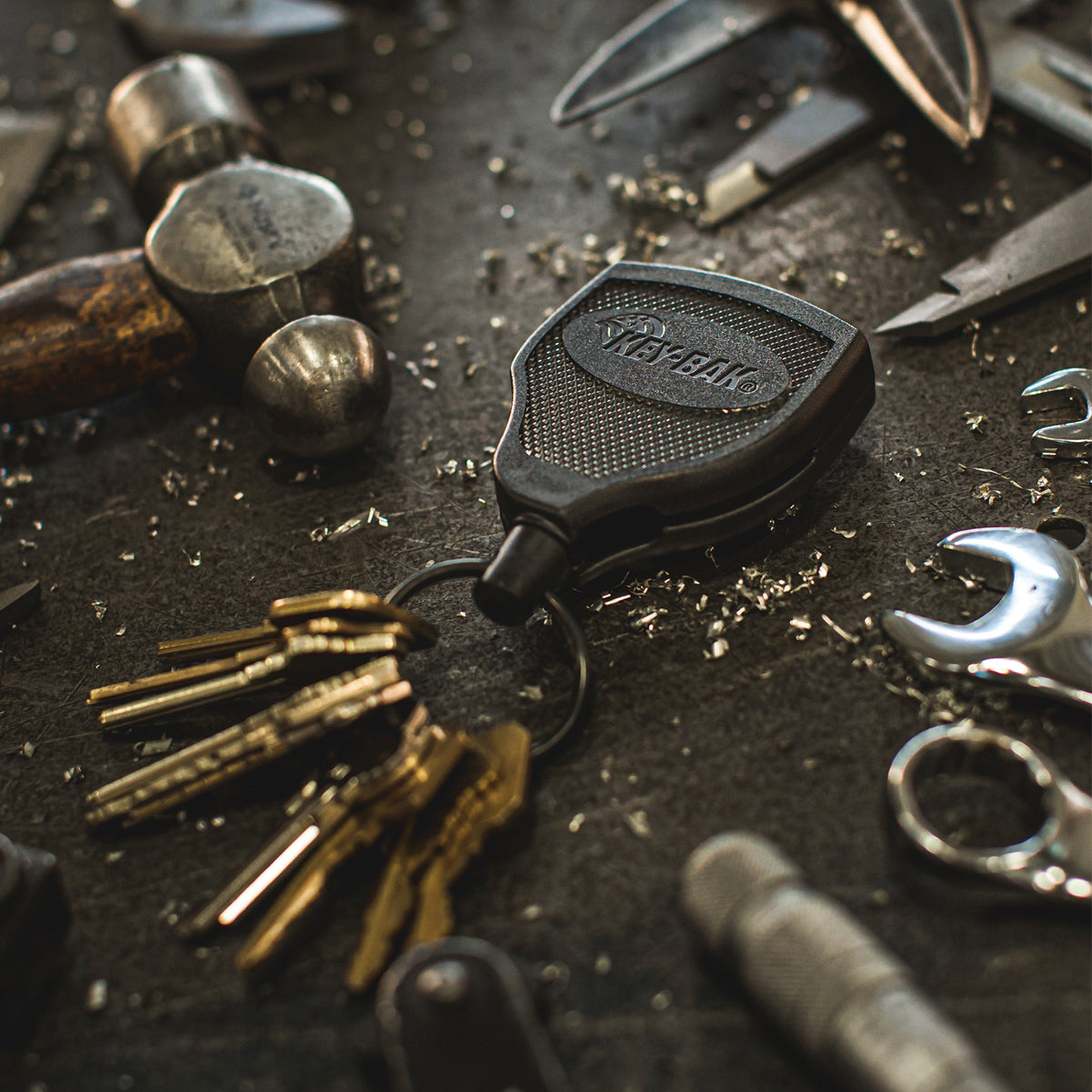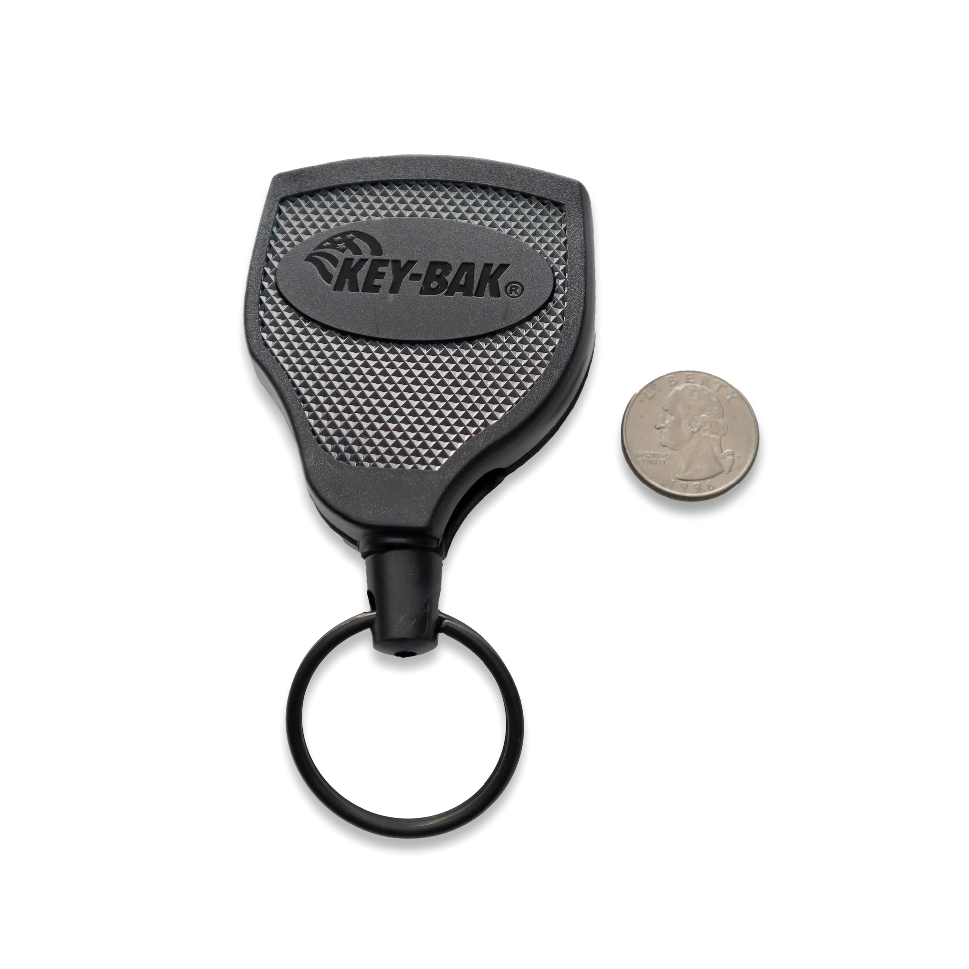 The Key-Bak Super 48 Heavy Duty Key Reel with Belt Clip, part number S48K, is an extra large 2 3/8" wide heavy duty key reel with an industrial strength polycarbonate case built for janitorial and maintenance duties, law enforcement, identification access control, and more.