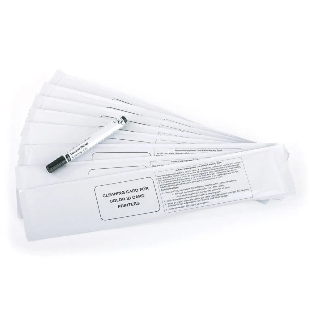 The Magicard 300 Cleaning Kit (part number 3633-0053) is designed to maintain the functionality and extend the lifespan of select Magicard printers, including the 300, 600, Enduro, Rio, and MC 200 printer models. This kit comprises ten alcohol cleaning cards and a printhead cleaning pen, which help in removing dust and other small particles that could impair your printer’s performance.