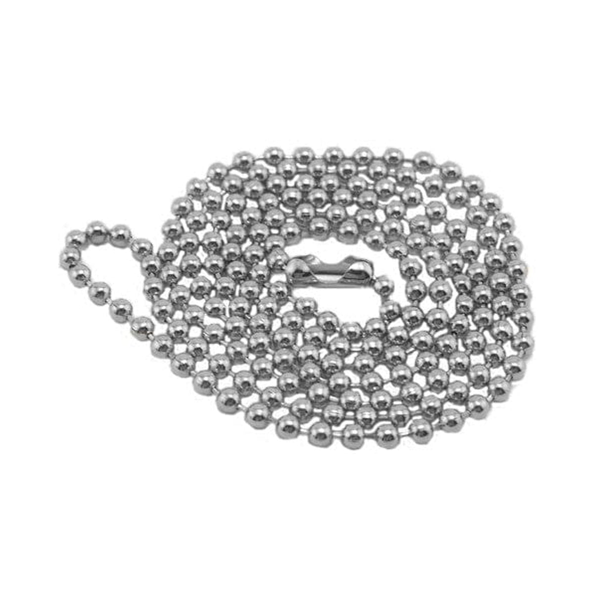 This nickel-plated steel beaded chain is 24" in length and has a connector. The bead size is No.3 (2.3mm) and it is a silver color. It has a strong and durable finish and is great for a variety of craft jewelry projects.