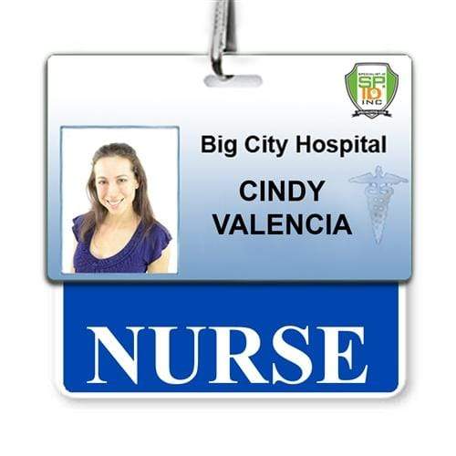 Identify your nurse in any busy hospital setting by order one of our Blue HORIZONTAL badge buddies. Our badge buddies are printed on both sides of the card so your text will be visible, even if the ID is flipped around.