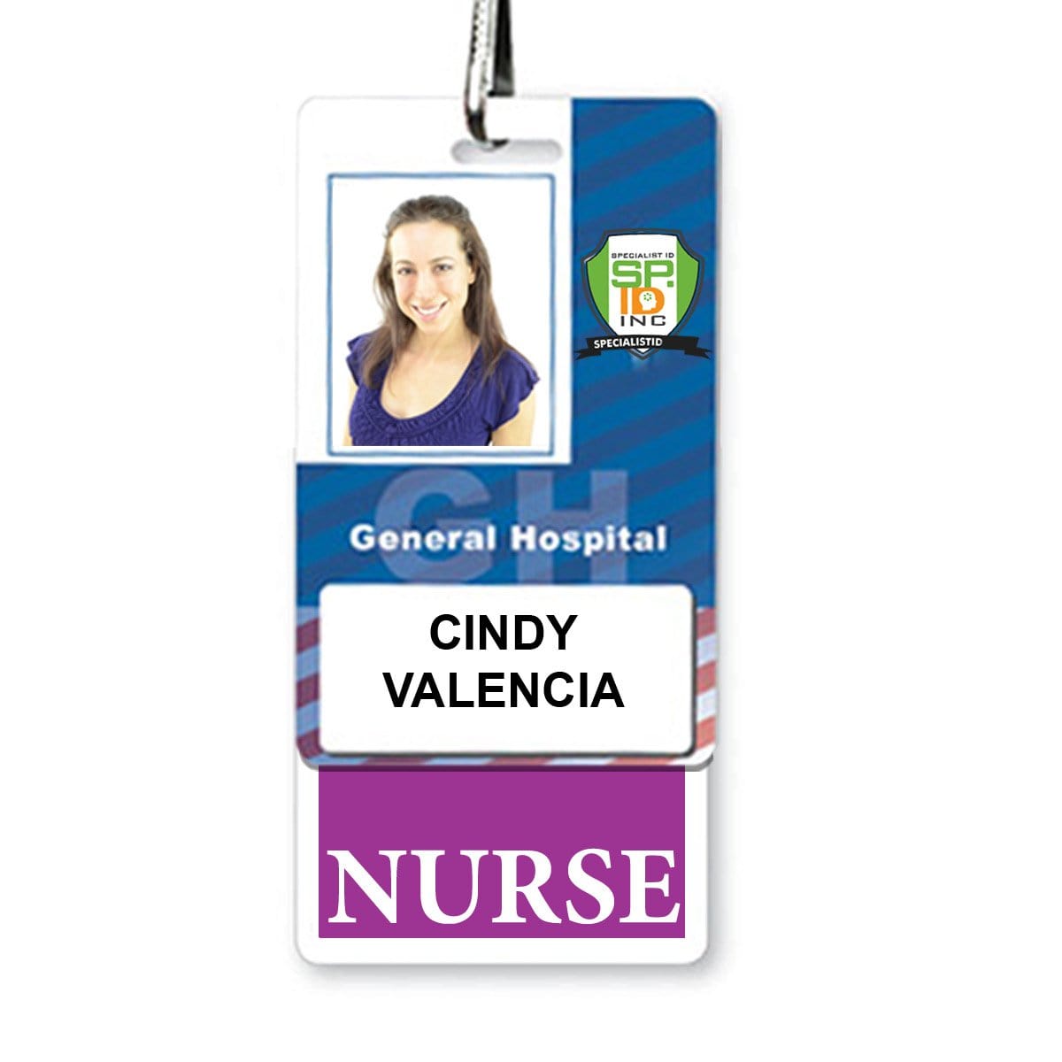 Our Nurse badge buddy with large text and solid purple border is a quick way to identify your Nurses in any busy hospital setting. Our badge buddies are printed on both sides of the card so your text will be visible, even if the ID is flipped around.
