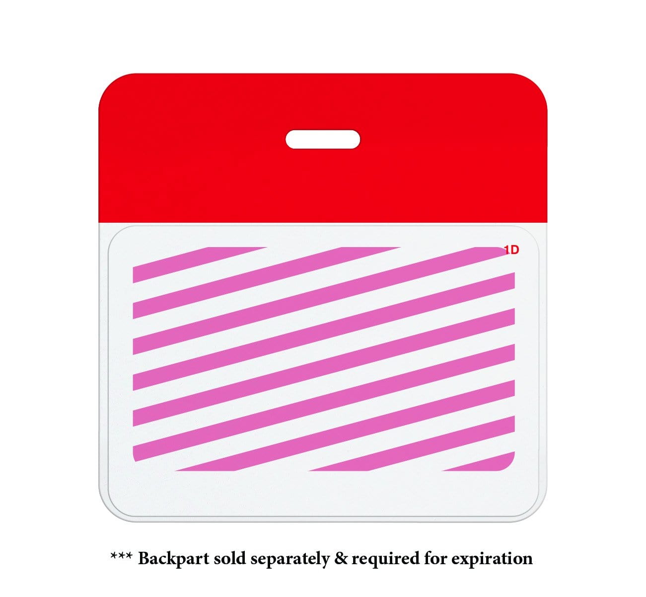 Blank inkjet or laser printable frontpart allows you to print your logo, heading, name, etc. by inkjet or laser printer (in color or black and white). After a one-day use, red lines will appear diagonally to indicate expiration. Size = 1.935" x 2.8125". Comes in package of 500.