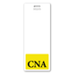 Designed specifically for Certified Nursing Assistants (CNAs), the CNA Badge Buddy is an indispensable tool that enhances recognition and supports efficient patient care in diverse healthcare settings. It is crafted to be a visual aid for both healthcare professionals and patients, enabling immediate identification of CNAs. The badge buddy is printed on both sides, featuring a prominent "CNA" title, and is accentuated with a yellow border that ensures clarity and visibility even in fast-paced environments. Its construction prioritizes durability and practicality, with a flexible design that resists breakage and an easy-to-clean surface, upholding hygiene standards crucial in healthcare. Additionally, it is equipped with a slot punch hole for effortless attachment to a badge reel or strap clip, designed to be worn conveniently behind the standard ID badge. This durable, laminated tool not only aids in fostering a smoother workflow by clearly identifying CNAs but also enhances the collaborative spirit amongst the healthcare team, ultimately contributing to a more efficient and patient-centered care system.