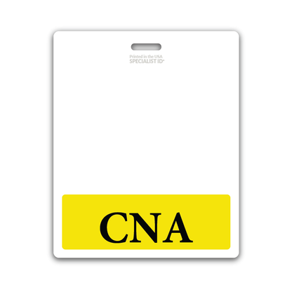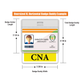 Designed specifically for Certified Nursing Assistants (CNAs), the CNA Badge Buddy is an ID badge backer that enhances recognition and supports efficient patient care in diverse healthcare settings. It is crafted to be a visual aid for both healthcare professionals and patients, enabling immediate identification of CNAs. The badge buddy is printed on both sides, featuring a prominent "CNA" title, and is accentuated with a color border that sets it apart, ensuring clarity and visibility even in fast-paced environments. Its construction prioritizes durability and practicality, with a flexible design that resists breakage and an easy-to-clean surface, upholding hygiene standards crucial in healthcare. Additionally, it is equipped with a slot punch hole for effortless attachment to a badge reel or strap clip, designed to be worn conveniently behind the standard I'd badge. This durable, laminated tool not only aids in fostering a smoother workflow by clearly identifying CNAs but also enhances the collaborative spirit amongst the healthcare team, ultimately contributing to a more efficient and patient-centered care system.