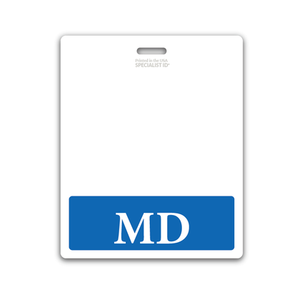 The MD (Doctor of Medicine) Badge Buddy is specifically designed for medical doctors, serving as a critical tool for identification and trust-building in healthcare settings. This badge buddy allows patients, their families, and fellow healthcare workers to instantly recognize the unique qualifications and authority of physicians. Printed on both sides, it prominently features in bold, the "MD" title, encased within a distinct color border that commands attention and conveys professionalism in the fast-paced world of medicine. Durable and practical, the badge buddy is made flexible to withstand the demands of a physician's daily responsibilities without breaking. Its easy-to-clean surface is essential for maintaining the high standards of cleanliness expected in medical environments. The badge buddy includes a slot punch hole, ensuring hassle-free attachment to a badge reel or strap clip, and is designed to be conveniently worn behind your standard ID badge. This durable, laminated tool is not just a means of identification; it is a symbol of medical expertise and reliability, enhancing the efficiency of patient care.