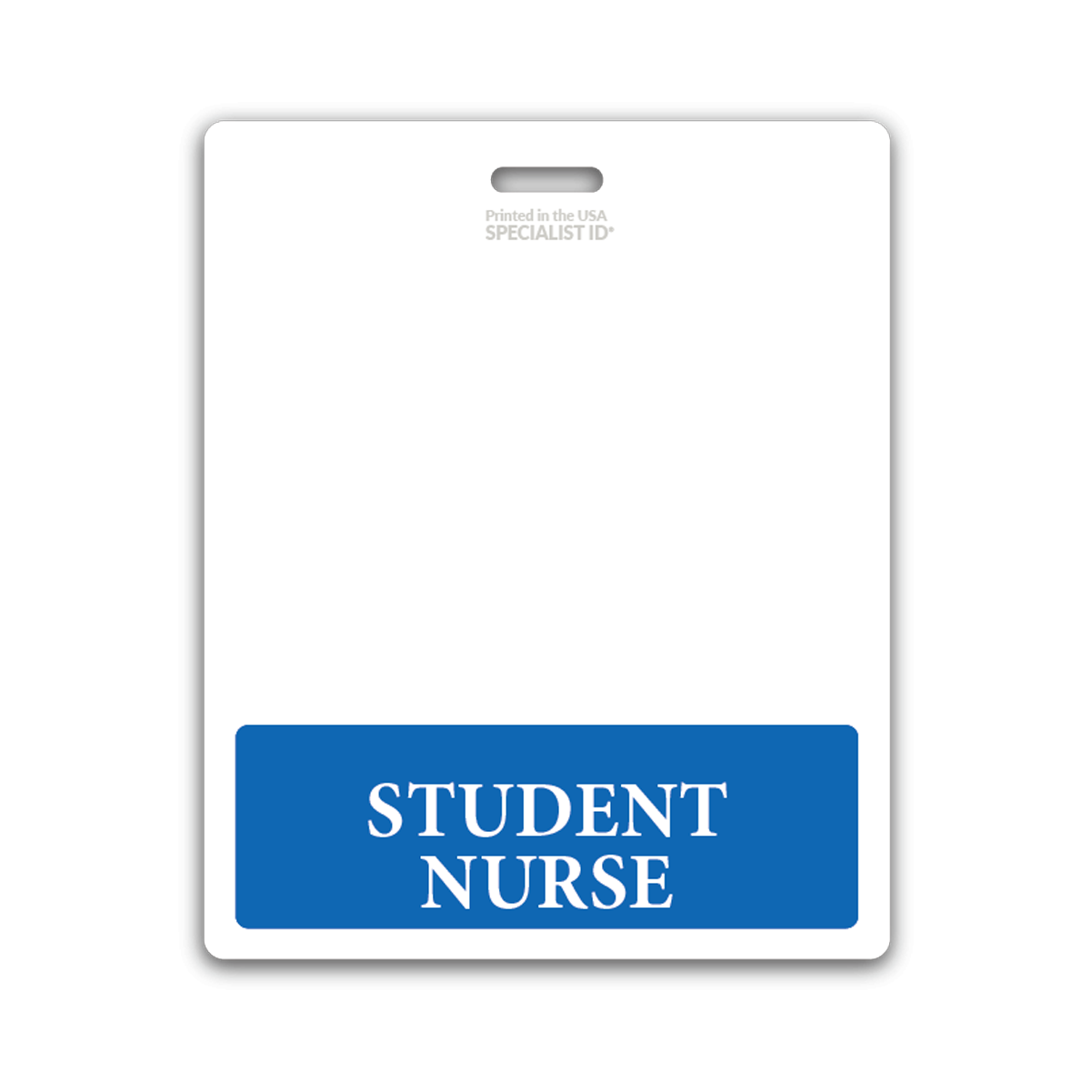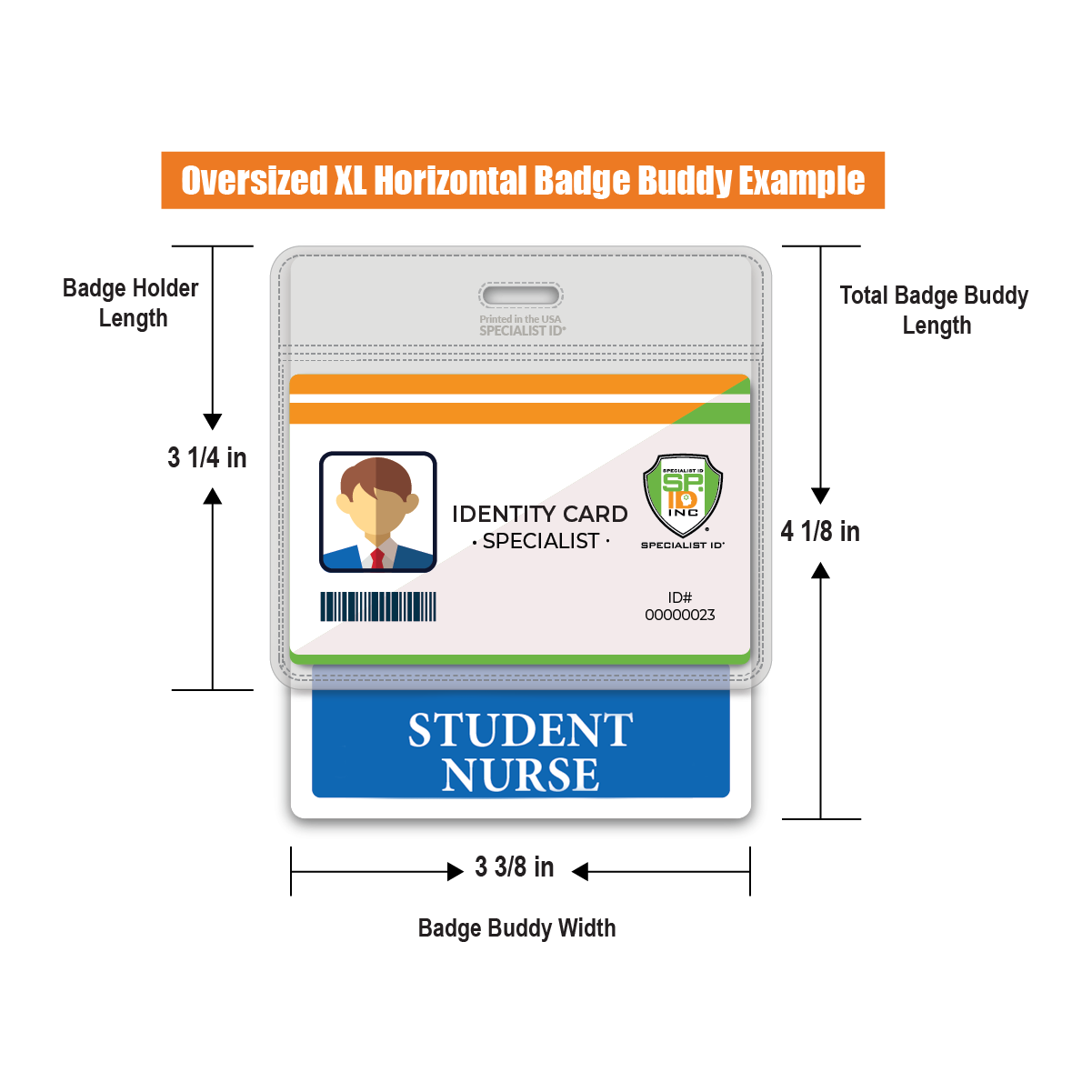 Our oversized "STUDENT NURSE" horizontal hospital ID badge buddy is 1" inch longer than our standard size badge buddies. Ideal to be worn beneath any standard (credit card sized) Healthcare ID badge that is worn inside a badge holder. Typically, for badges that do not have a slot punched hole. Â