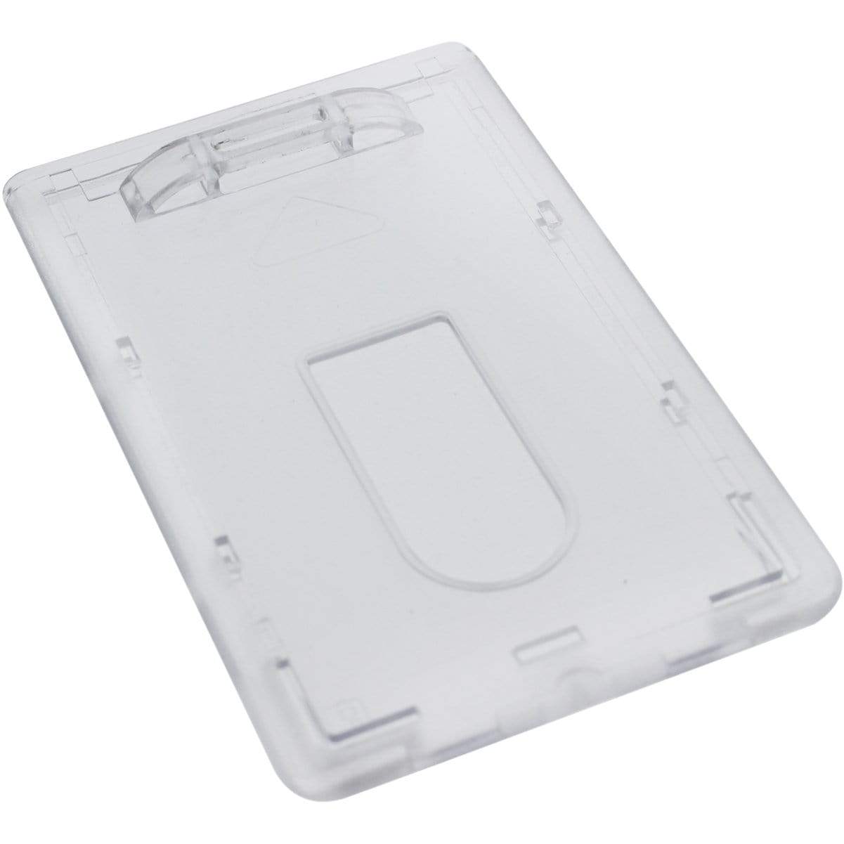 This vertical, light weight, frosted clear badge holder is made of a durable hard plastic for protection of your standard sized ID badge, and it has a UV protection finish to save the wear and tear of your ID inside. With easy accessibility, your card may be used to swipe or display at any access point or POS.