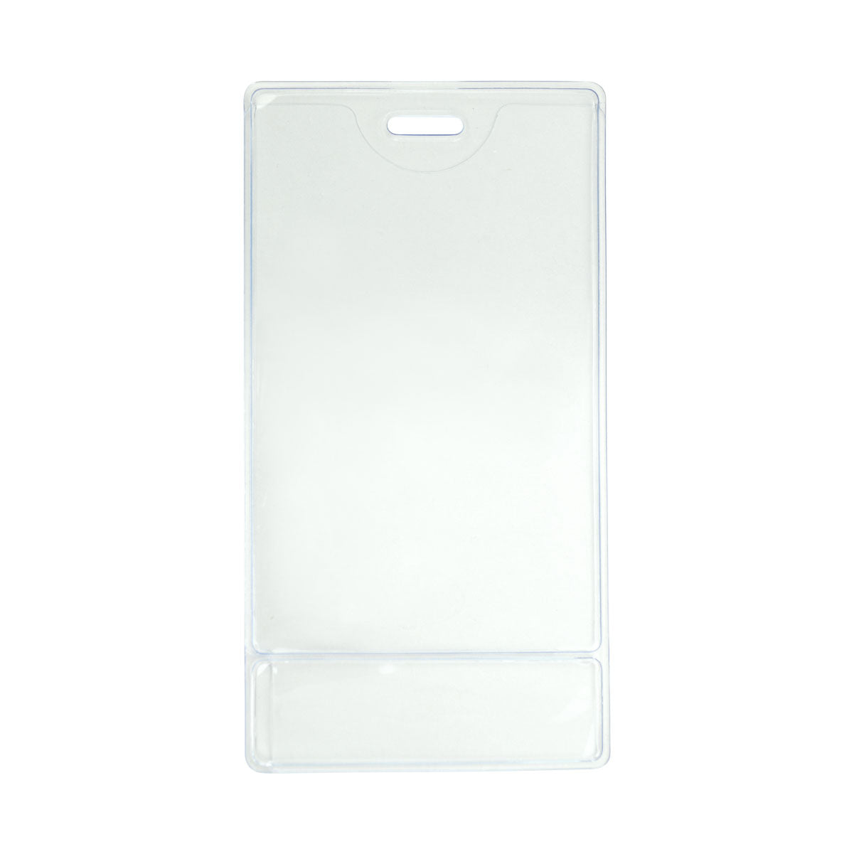 These flexible vinyl badge holders are perfect for meetings, conventions and more. They feature a space to display a standard data/credit card size ID or name tag plus an extra space at the bottom for an insert card with a custom logo or line of text. Holders are made from our premium vinyl material with reinforced edges and include a convenient slot for easy attachment to a strap clip, lanyard or badge reel.