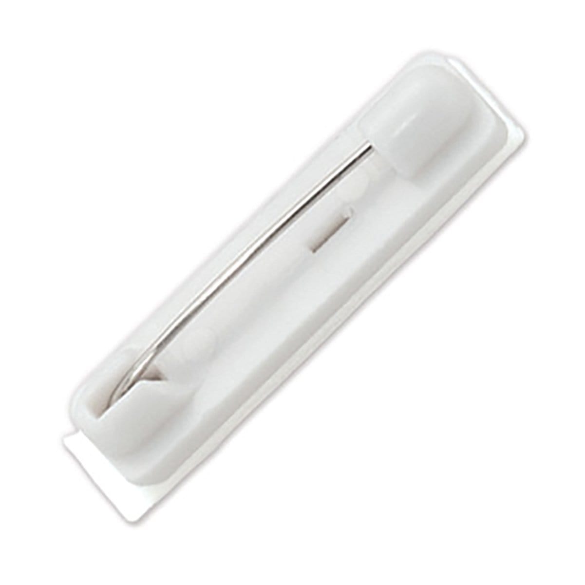 Pressure-Sensitive Plastic Adhesive Bar Pin, 1 1/4" (32Mm), Rectangular White Plastic Safety Pin W/Pressure Sensitive Polystyrene Base, Tabbed Release Paper And High-Bond Adhesive Pads, Pad Dimension 1 1/4" X 1/4" (32 X 6.5Mm)