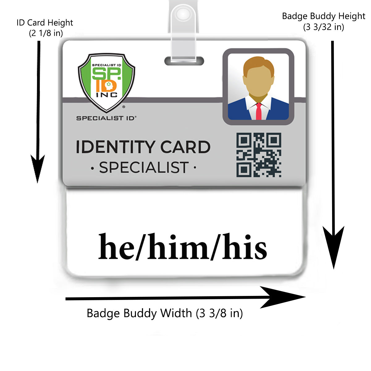 He/Him/His badge buddies promote diversity, equity, and inclusion in any busy environment. Badge buddies easily clip onto your existing badge reel or lanyard and work with any standard sized ID Badge. They are printed on both sides of the card to display visibility even if the ID is flipped around.