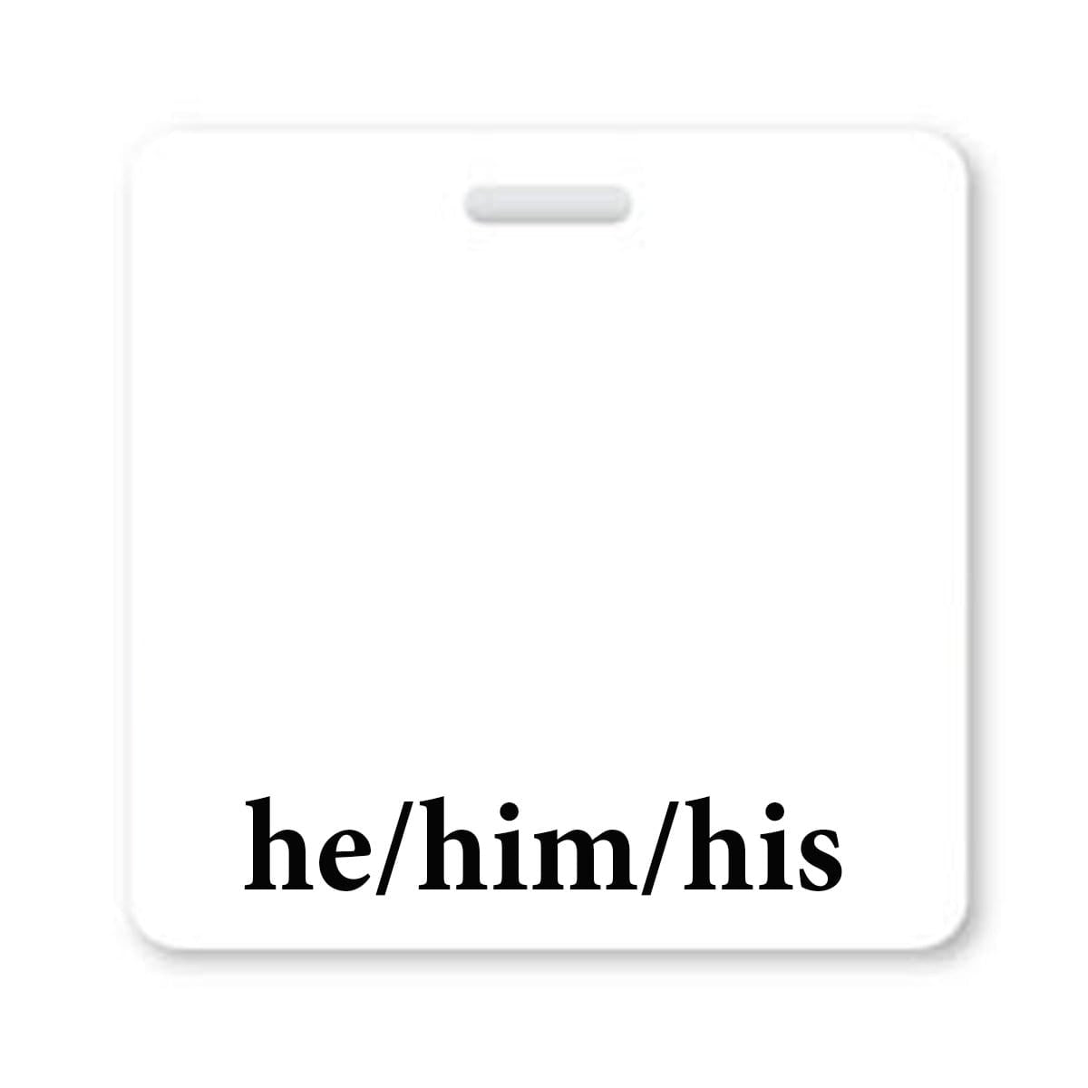 Pronoun Badge Buddy He/Him/His Horizontal with White Border
