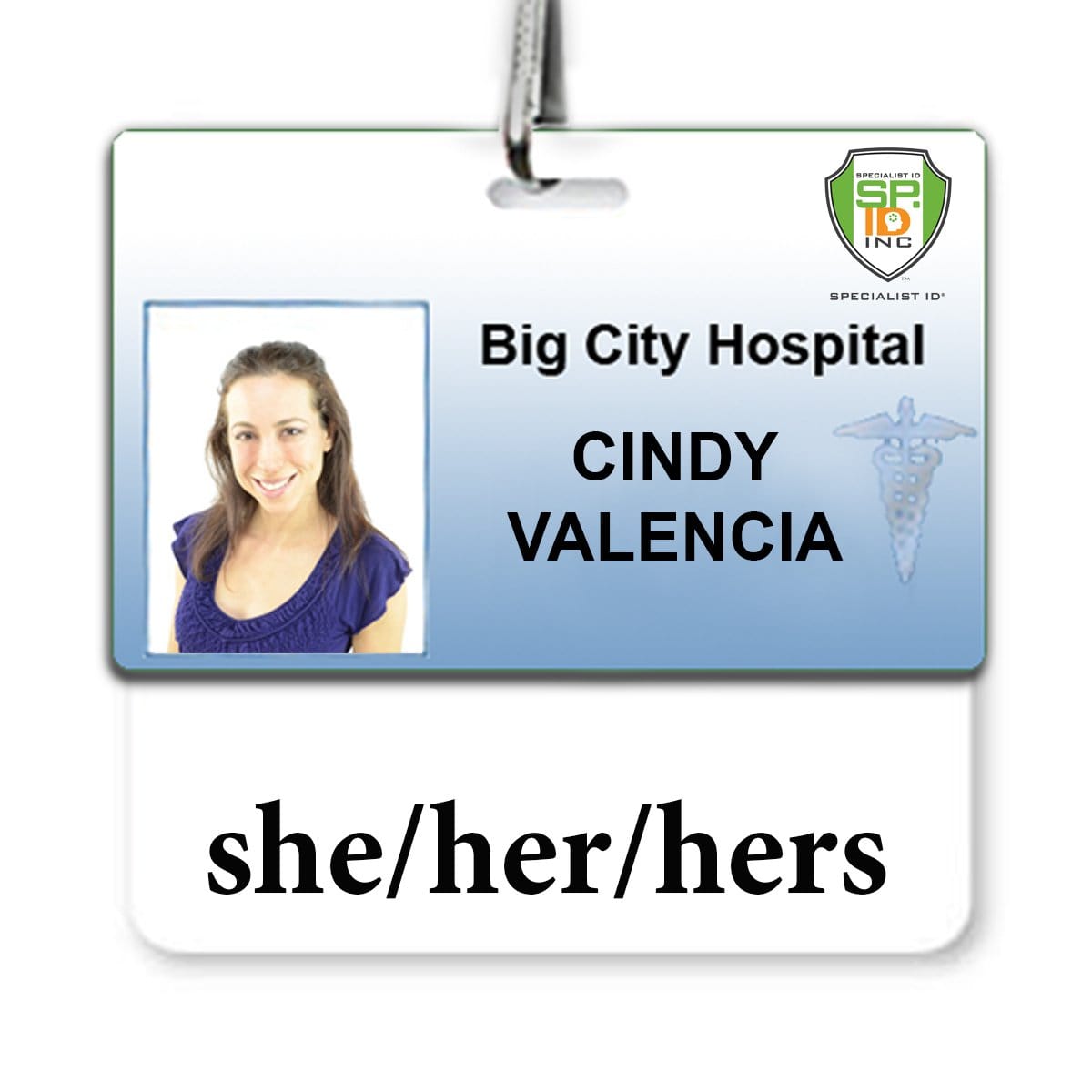 She/Her/Hers badge buddies promote diversity, equity, and inclusion in any busy environment. Badge buddies easily clip onto your existing badge reel or lanyard and work with any standard sized ID Badge. They are printed on both sides of the card to display visibility even if the ID is flipped around.