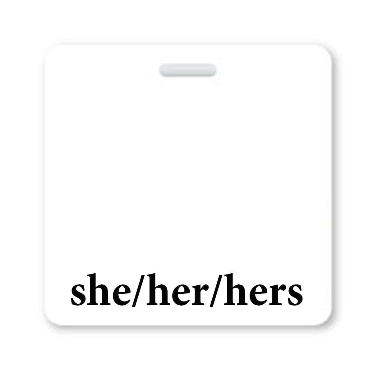 Pronoun Badge Buddy She/Her/Hers - Horizontal Gender Role Identification Badges with White Border